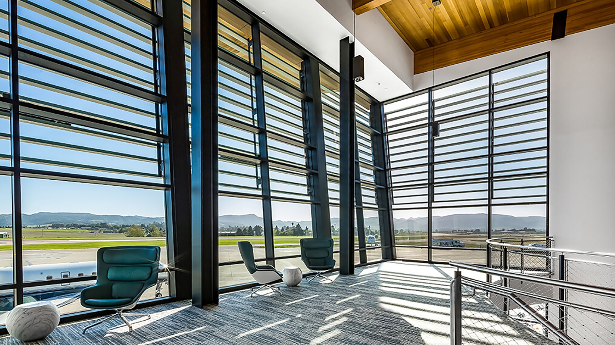 Maienza + Wilson has done several projects for ACI jet. These are particularly special projects for John Gregg as they are both aviators. This is the Headquarters and of ACI Jet. It is an FBO and maintenance located at the San Luis Obispo Airport.