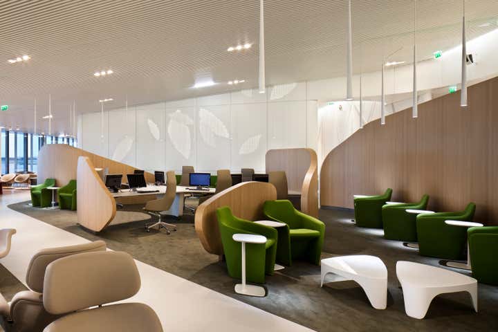 Brandimage and Noé Duchaufour-Lawrance have designed the new Air France business lounge at Paris-Charles de Gaulle airport, which is over 3,000 m2. This lounge has been conceived as a harmonious pathway, consisting of sections which are conducive to walking acting as a prelude to the journey ahead. The architectural concept was inspired by a park and developed around a contemporary reinterpretation of the plant expression. Shapes, materials and colours conjure up nature and the organic world. The paths are organised and give structure to the lounge like offshoots of a plant: taut lines and curved shapes go hand in hand with the vision and retain privacy without partitioning.