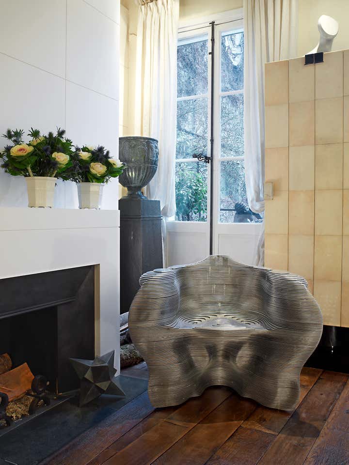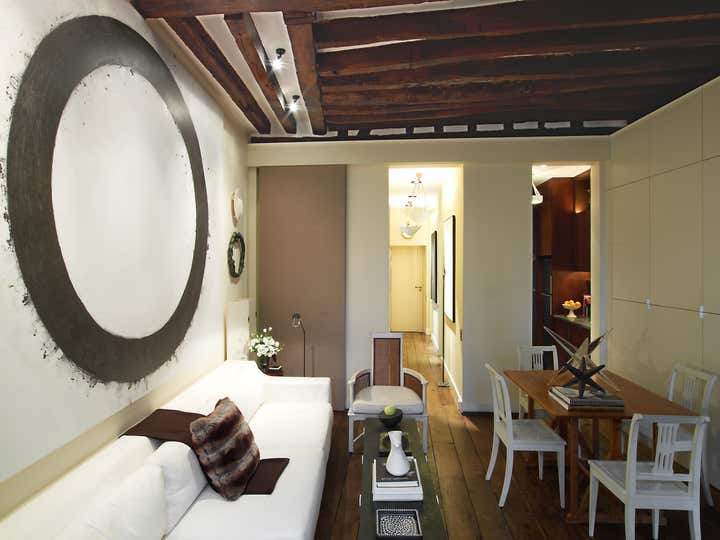 A one bedroom apartment in a 18th century building that is located in Paris 6eme, close to Saint Germain de Pres. The space has high ceilings with a fireplace and a terrace facing a courtyard. Art plays an import role with artists such as Antoine Bourdelle, Jean Arp, Louise Nevelson, Lalanne and Mathias Bengtsson. The apartment is comfortable with a mix of modern furniture, Scandinavian and French antiques.