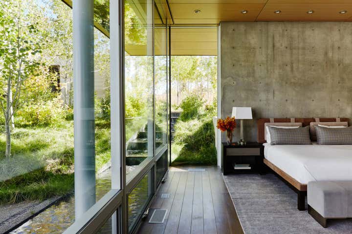 A place of glass, light, and an unobstructed view of the Tetons. A setting of take-your-breath-away beauty. An experience of furnishings that provide a place to seek (and always find) comfort, warmth and intimacy, and the quiet luxury of its materials extend a welcome to family and friends. In this home, the intersection of nature and design produces a sensual harmony that’s enjoyed daily.