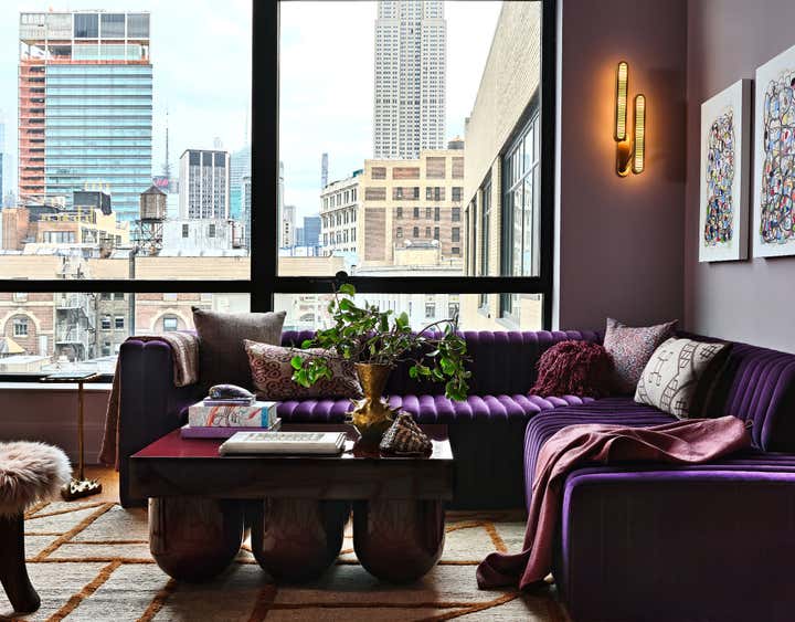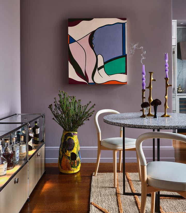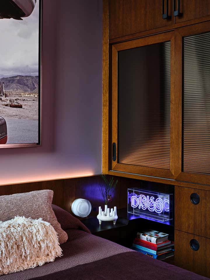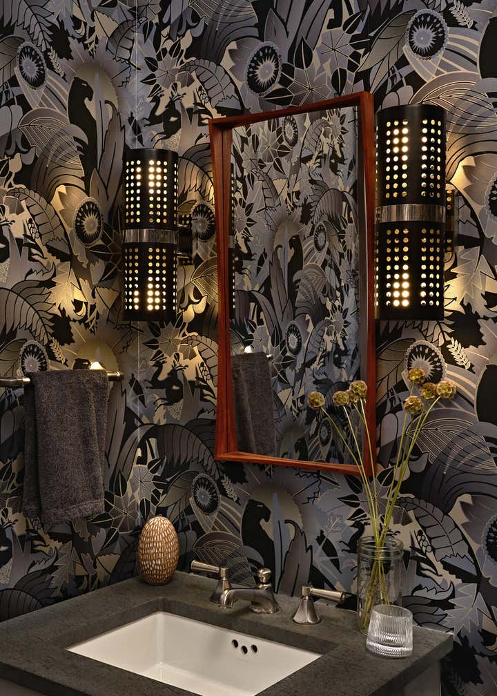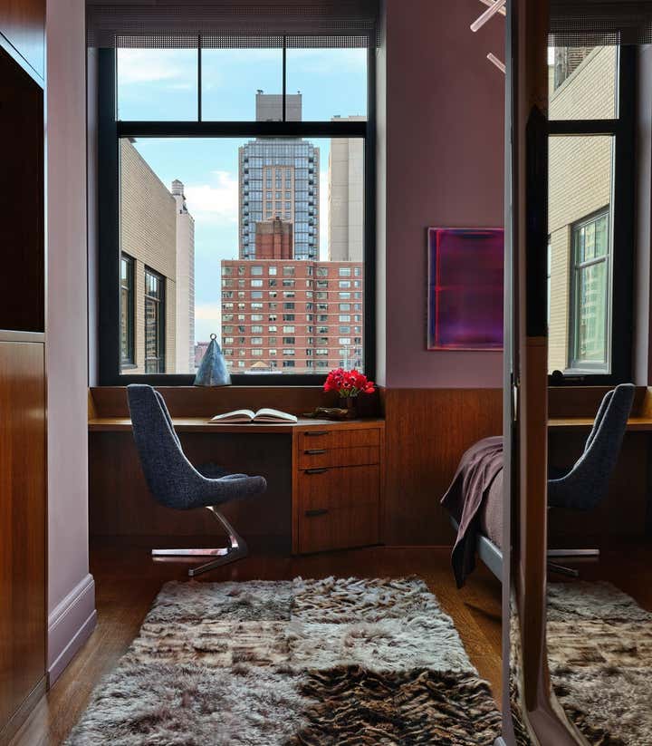For this client’s seventeenth story bachelor pad with unrivaled views of the Empire State Building, we pitched a surrealist fantasy with fetishist inclinations, futurist silhouettes and full throttle color. Imagine Alice fell down that rabbit hole to find Tom of Finland and Salvador Dali as guests at the Mad Hatter’s tea party. Trippy? Sure. But in our universe you might just see a chair from the set of Star Trek, jungle print wallcovering is never taboo and tweed and latex upholstery aren’t mutually exclusive.