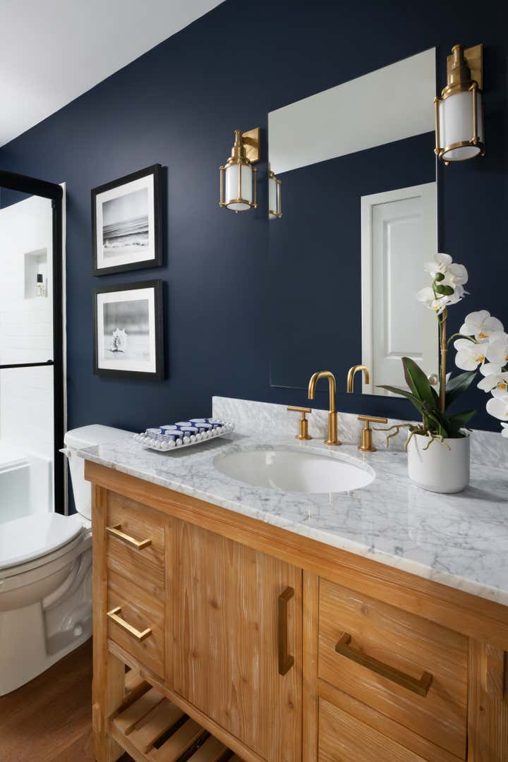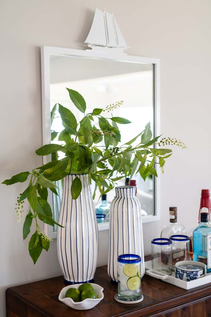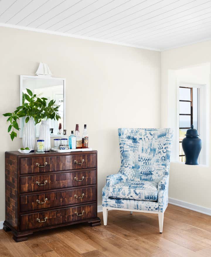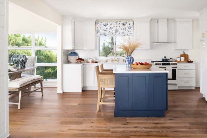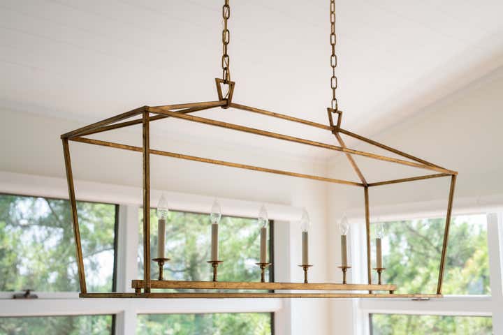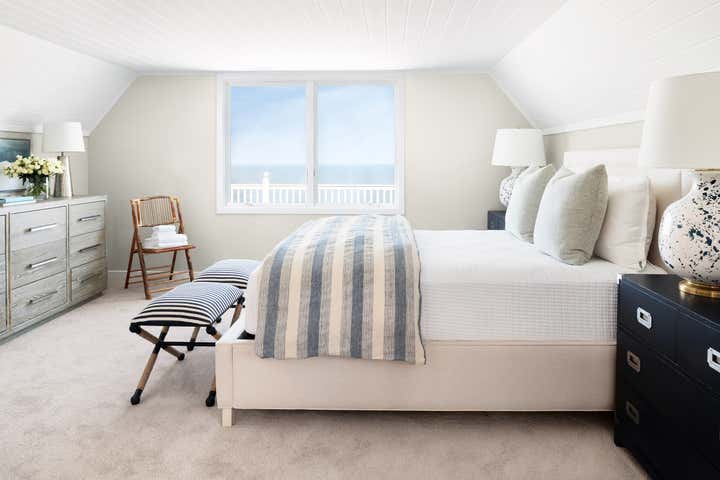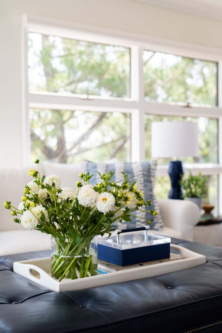 We tackled the top-to-bottom redesign of this Delaware beach house with two goals in mind: create an elegant, comfortable retreat and maximize the stunning water views. Mission accomplished! Lead designer Leigh Mayhew used a classic coastal color palette of blue, white, and sand. The wood floors and accent pieces bring warmth to the space. The finished result is a beautiful home in harmony with its beachfront setting.