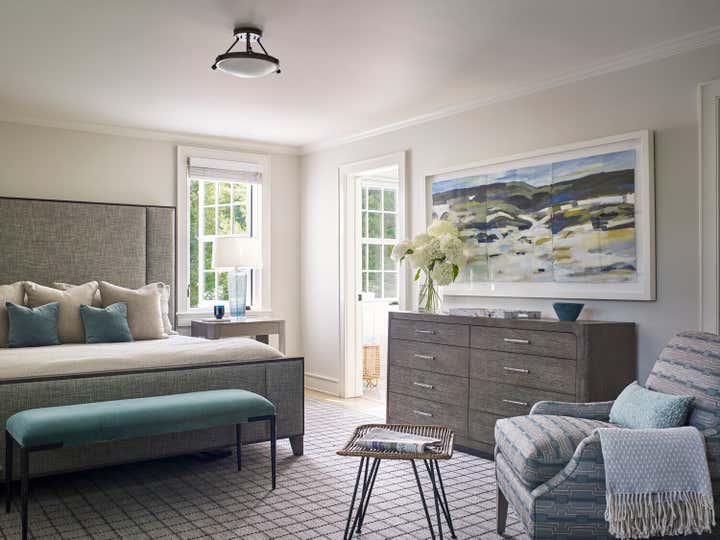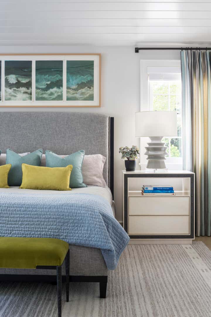 The sea greens, sky blues and beachy sand color palette is drawn directly from the client’s extensive art collection. Nothing like a day at the beach to give you a new fresh glow.