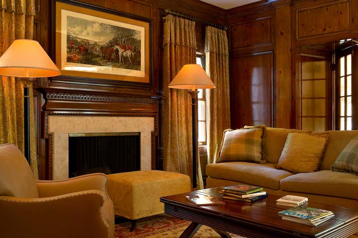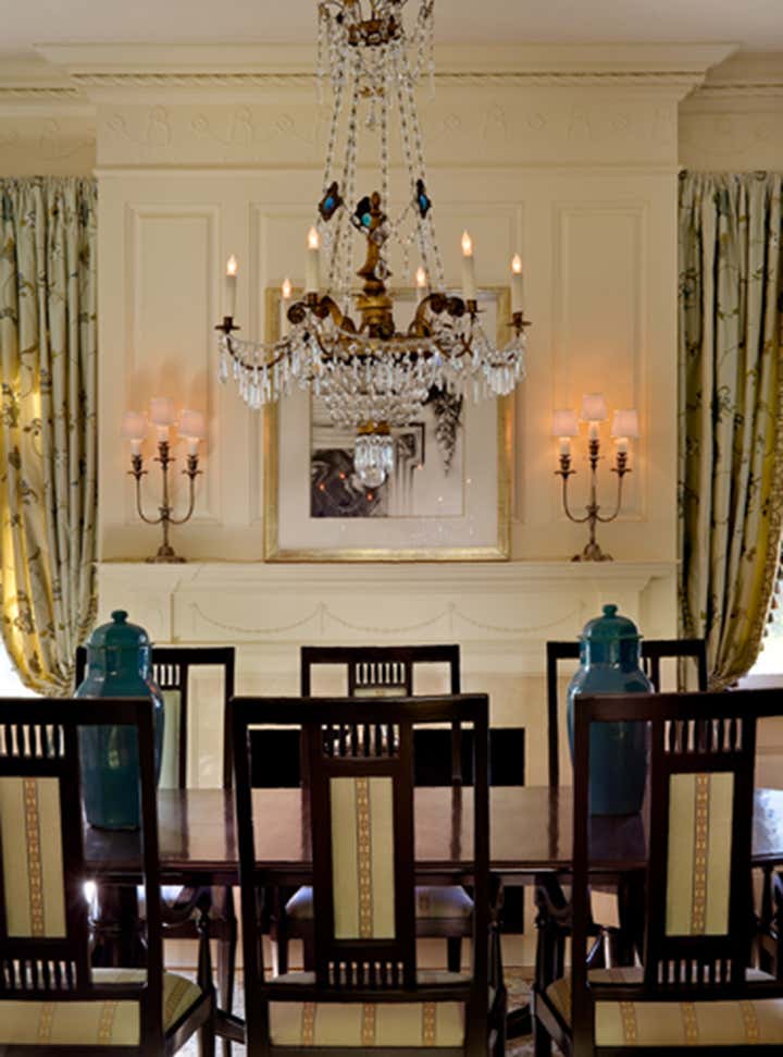 Merging the austerity of the classic Georgian architecture with the warmth of an old growth Southern California garden was the challenge for the design team with the Ambassador s residence. Enos capitalized on the dappled sunlight to play off the traditional furnishings and referenced Wedgewood-inspired "blue" as a major and minor color palette throughout the home.