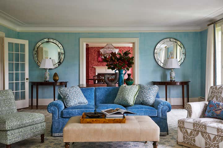 With our encouragement the clients ventured to embrace vibrant colors and patterns throughout the residence. Indigo, reds, greens, and pinks infuse each room with personality, creating a cohesive and layered design. The incorporation of textures and exquisite paint finishes complements the art collection that showcasing remarkable works by regional artists. Adding to the charm, the home is adorned with elegant heirloom pieces, including fine English and American antiques. These timeless furnishings contribute to an ambiance that feels special and refreshingly contemporary.