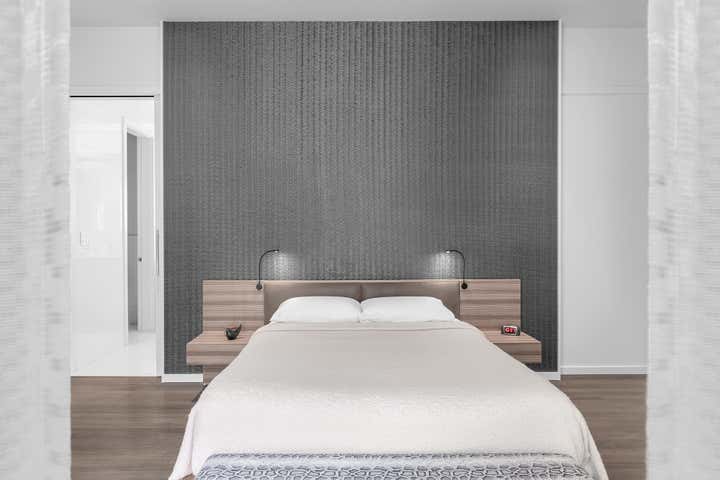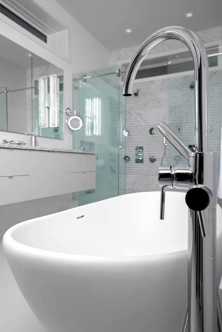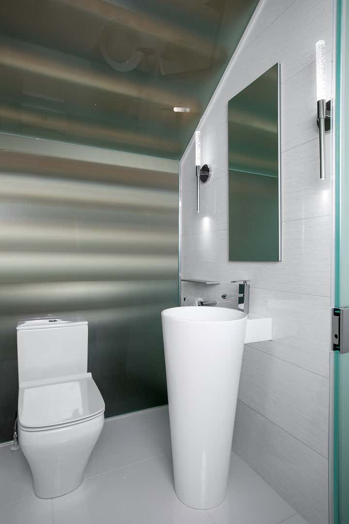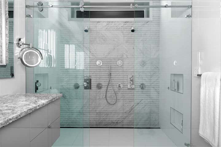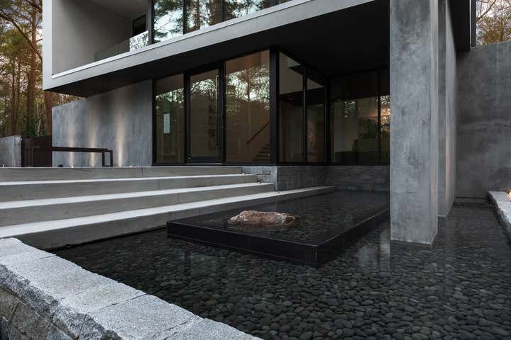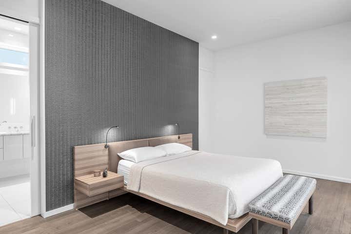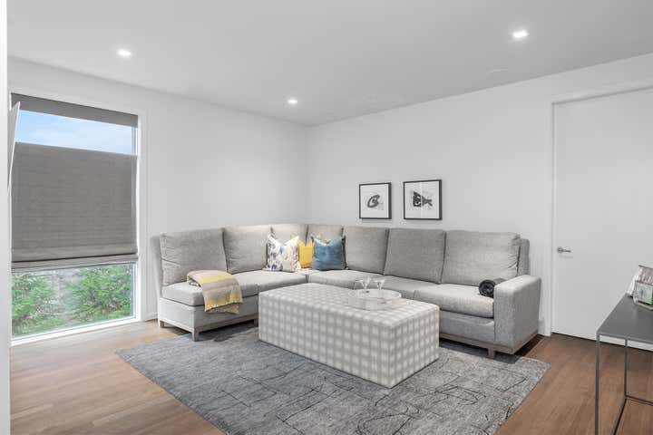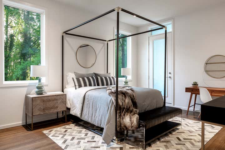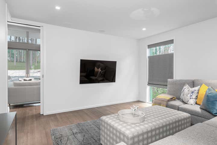 This home s owner loves the modern aesthetic. What s unique about this home, besides all of it, when greeting guests in the front entry gallery, the primary living areas are private. This house is all business in the front, all big open entertainment spaces in the back. Be sure to look at the "glass cube" powder room under the stairs and the two staircases that begin in the front and the back, to meet together on the second floor.
