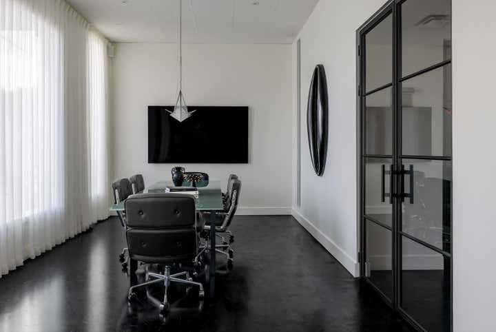 A vintage Roche Bobois table sourced from France is the centerpiece of the Bilal Rehman main conference room.