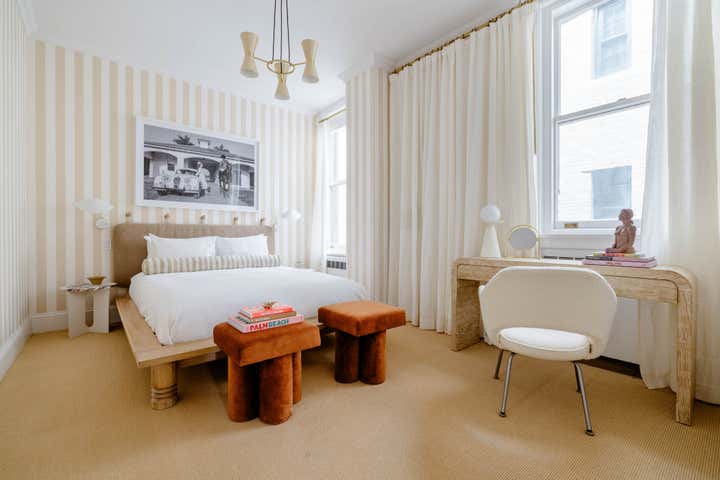 Our Grand 2-Bedroom apartment, located in the iconic and exclusive Bliss House, has high 10ft ceilings, expansive windows casting golden light and and both cream and natural linen drapes, giving earthy yet sun-kissed vibes.