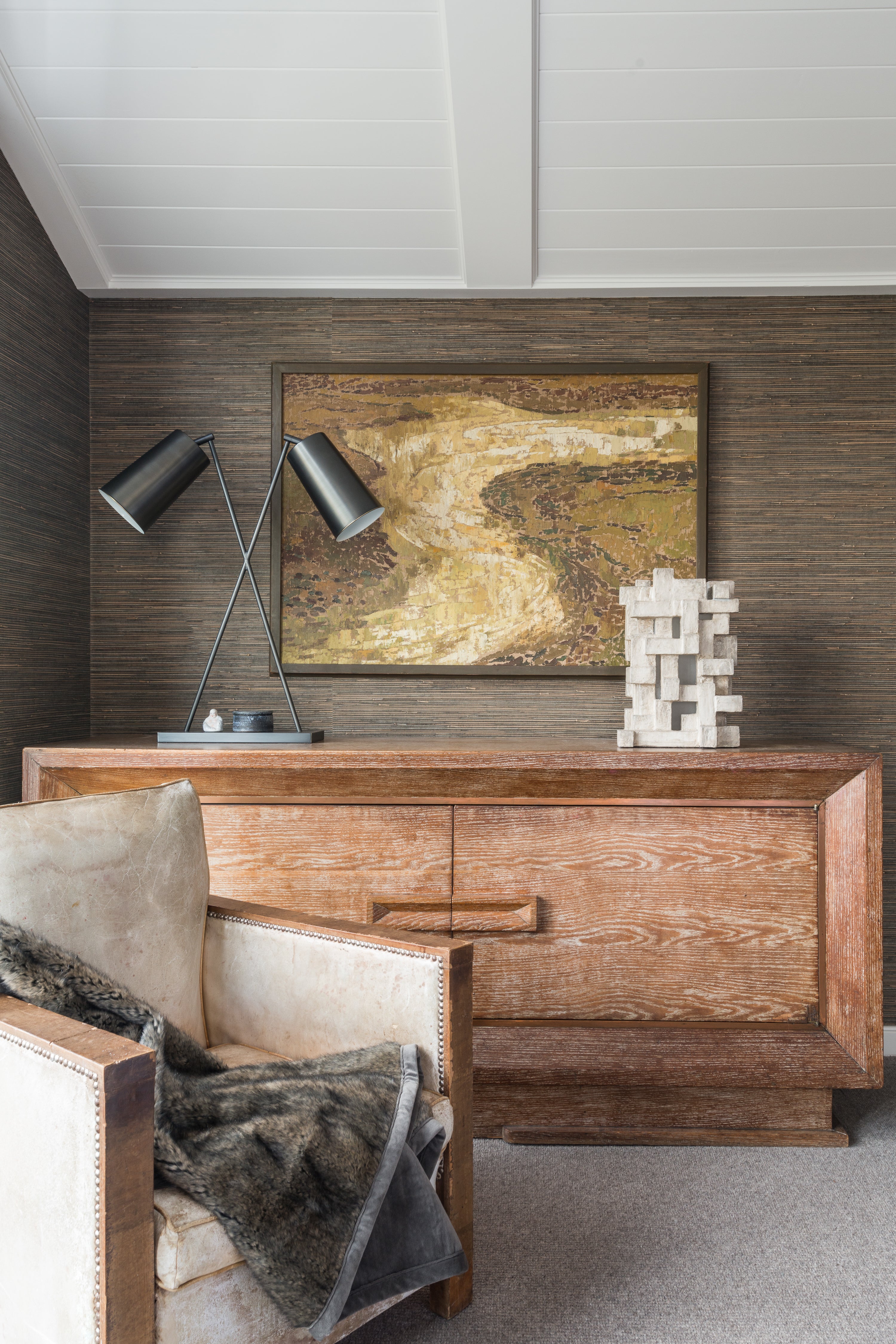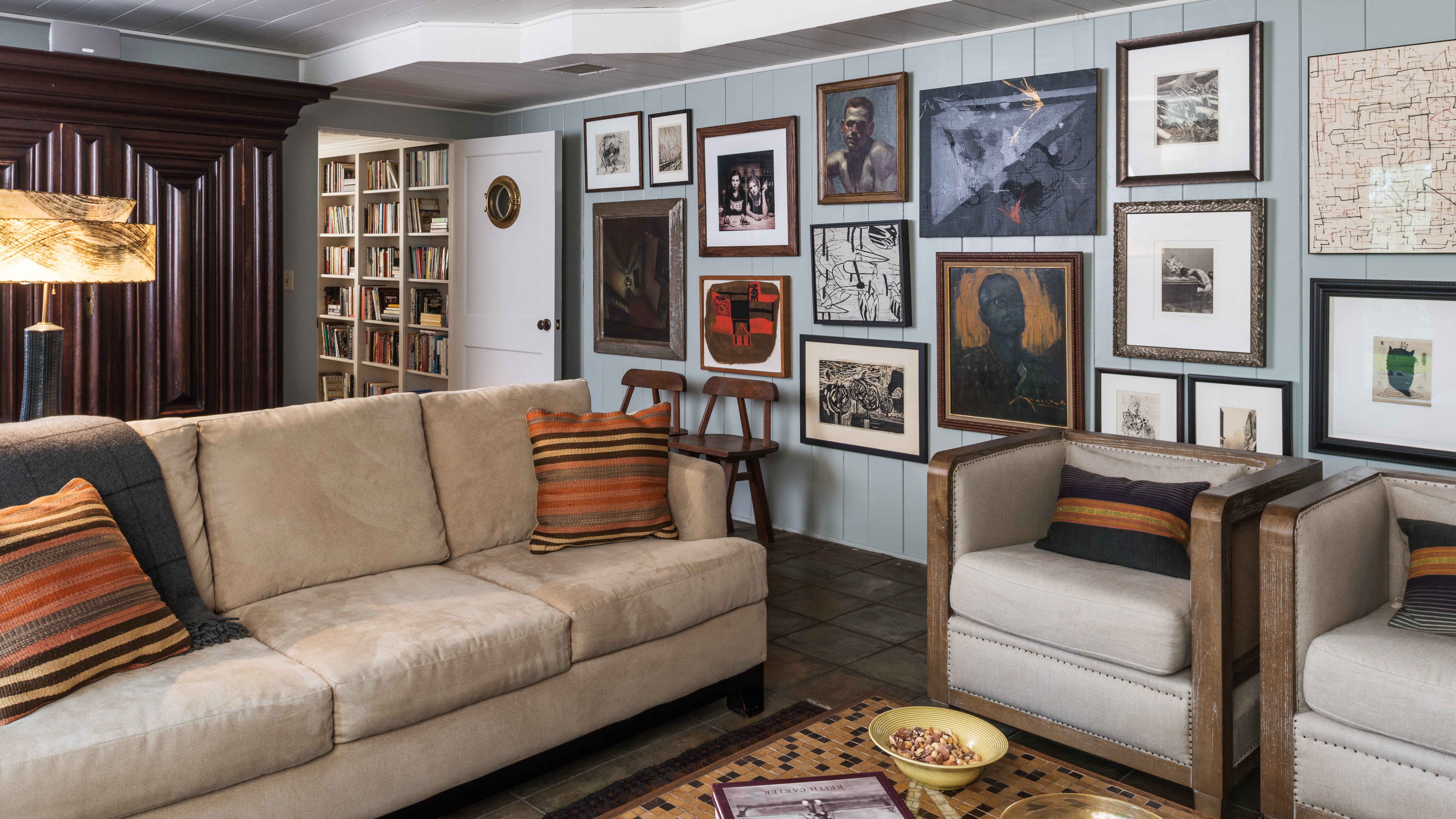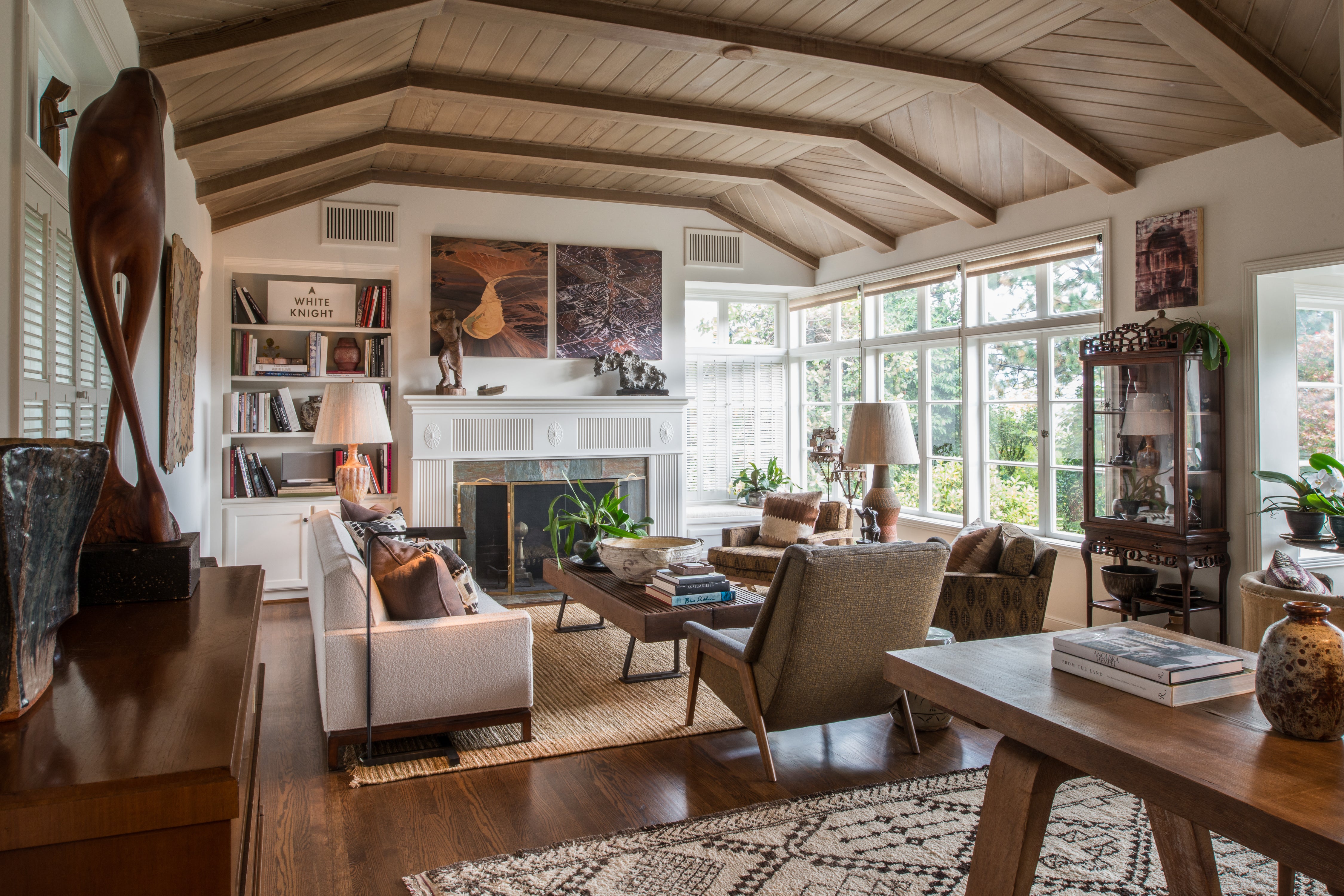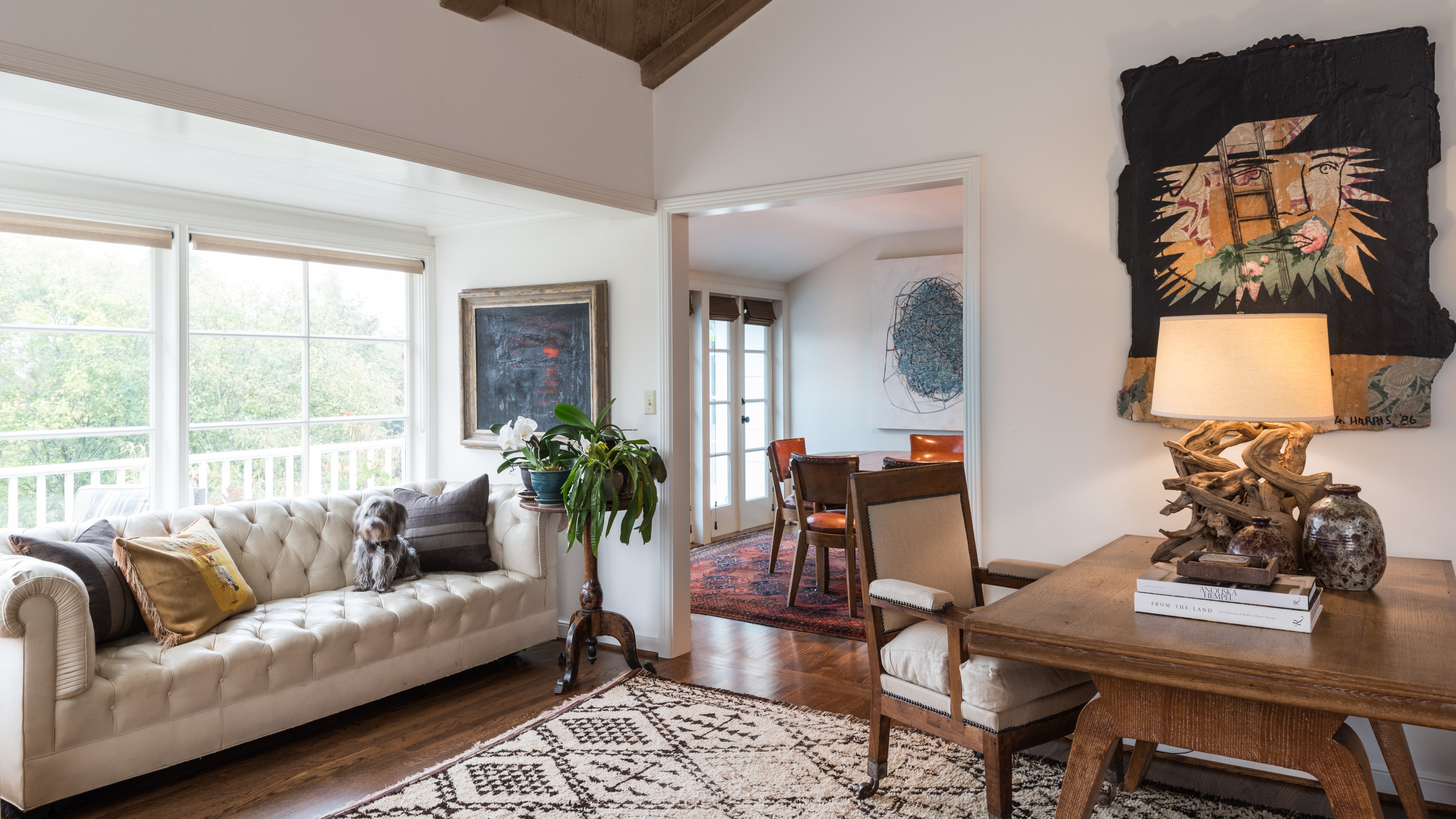 The client was excited by the 30’s California canyon vibe of the house but wished for more connectivity and comfort throughout. We took the opportunity to open walls and create more fully connected spaces. The variety of living areas within the house provided the fortunate occasion for a diverse palette of textures, materials and forms to furnish the rooms. A collectors environment emerged that blends 17th century to mid 19th century furniture and art. The house is an eclectic yet completely familiar and inviting place to call home.