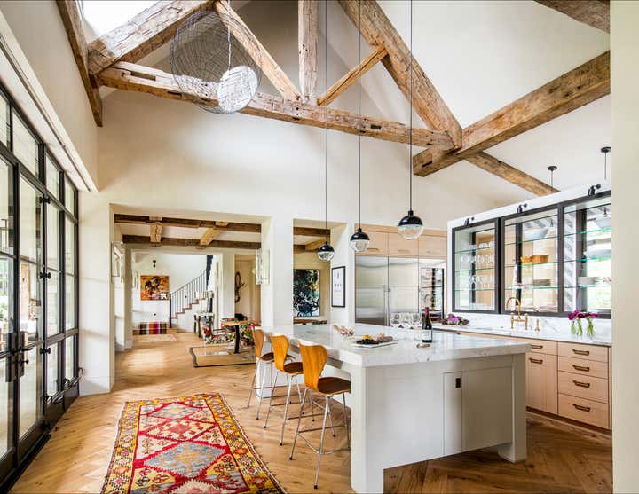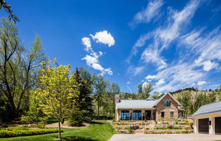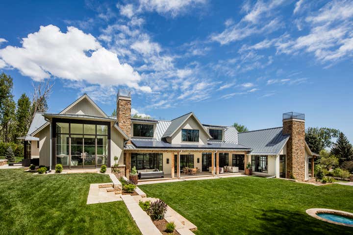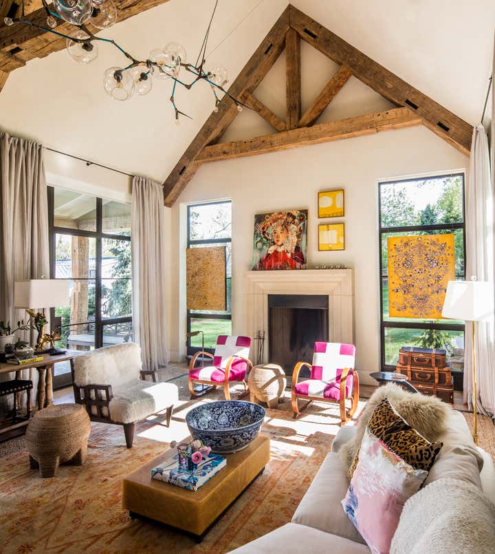 Building upon the clients’ passion for architecture and design, this project is a mix of furnishings, lighting and art that create layers of texture and color. Set in historic Boulder, this farmhouse is the perfect mix of modernity playing against a backdrop of rustic materials. The stellar architecture is by Annette Martin.
