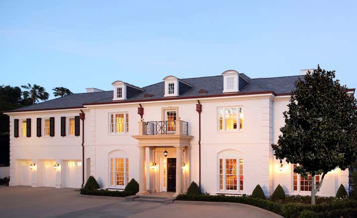 A modern interpretation of white brick Colonial Revival houses found around Atlanta by such architects as James Means and Neel Reid, this Brentwood home is designed for a young family and adapted to the climate and lifestyle of Southern California. Organized around a classic central hall plan, major rooms are formally designed with paneling, niches and classic fireplaces. Midcentury pieces mixed with antiques are a nod to old Hollywood glamour.