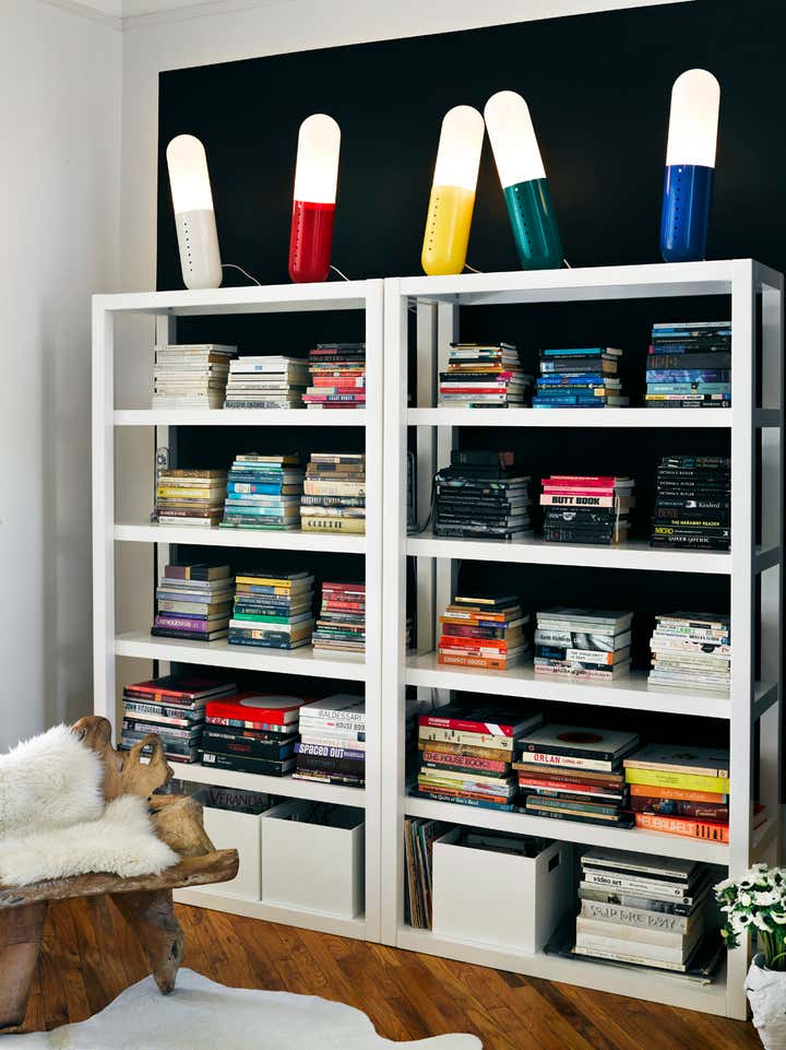 This was a fun project for the home of my senior designer Alex P White and his partner, also an artist. Their home, in a classic Brooklyn brownstone, was like an evolving exhibition, so depending on where they were artistically every month it looked completely different. They had new ideas on a daily basis, so my role was equal parts sounding board, mom, arbitrator and aesthetic editor. I am inspired by interiors with unexpected elements so was immediately onboard with their impulse to spray paint poetry on the walls. The prewar details were a perfect backdrop for the custom gold laminate platform bed, Richard Etts plaster lamp in the form of a pair of hands, and frisky Kitty sculptures by Alex’s partner Strauss Bourque La-France. What this project perfectly illustrates is something I strive to never forget: things don’t need to be blue-chip or pricey to come together in a beautiful way. For me, it’s more about a personal and emotional connection and how things interact in the space