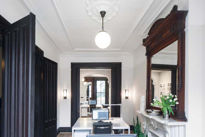 In keeping with our goal, the brownstone was not gut renovated. Rather, it was carefully upgraded, taking the age of the building into consideration. Original staircases, floors, doorways, mouldings, mantles, and high ceilings were kept to preserve the beauty and character of the building. Adding distinctive touches, the design team used this great opportunity to give a modern feel to the historic building. The original floor plans were even conserved and reused for comfortable working and living functions.