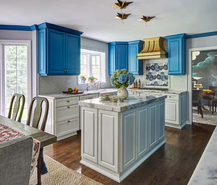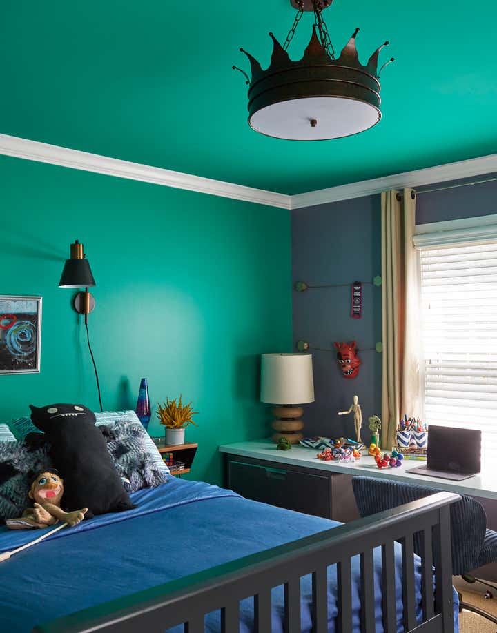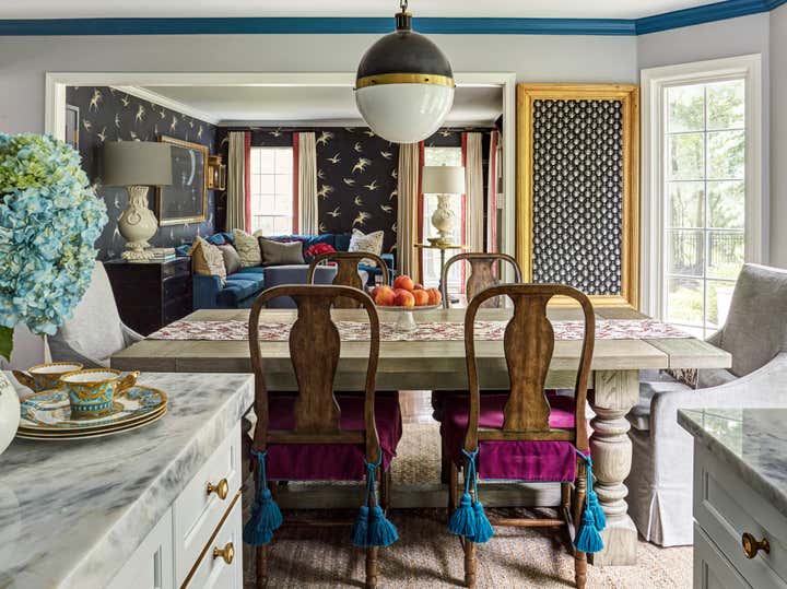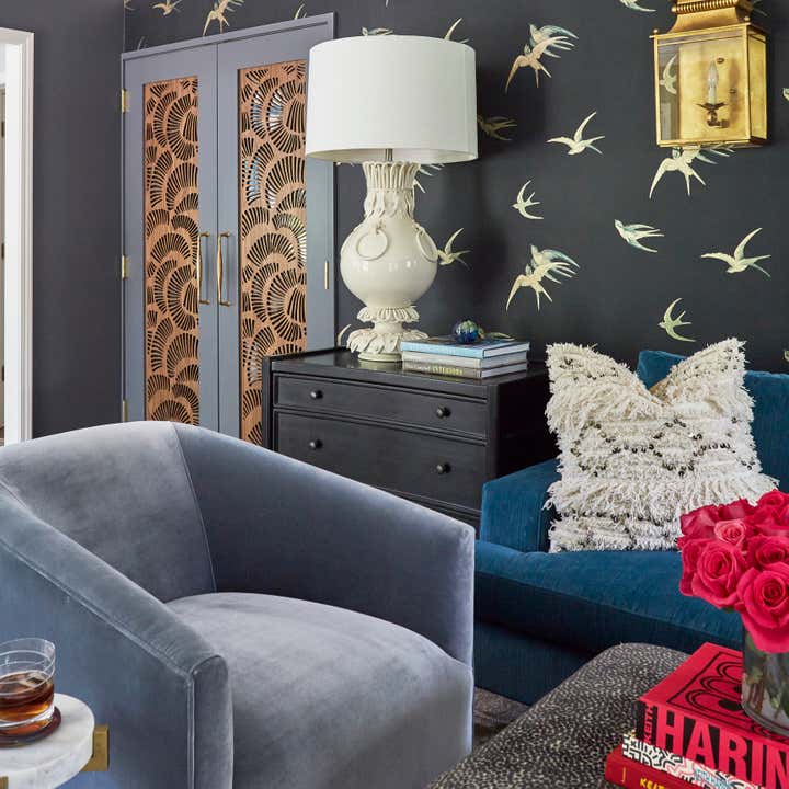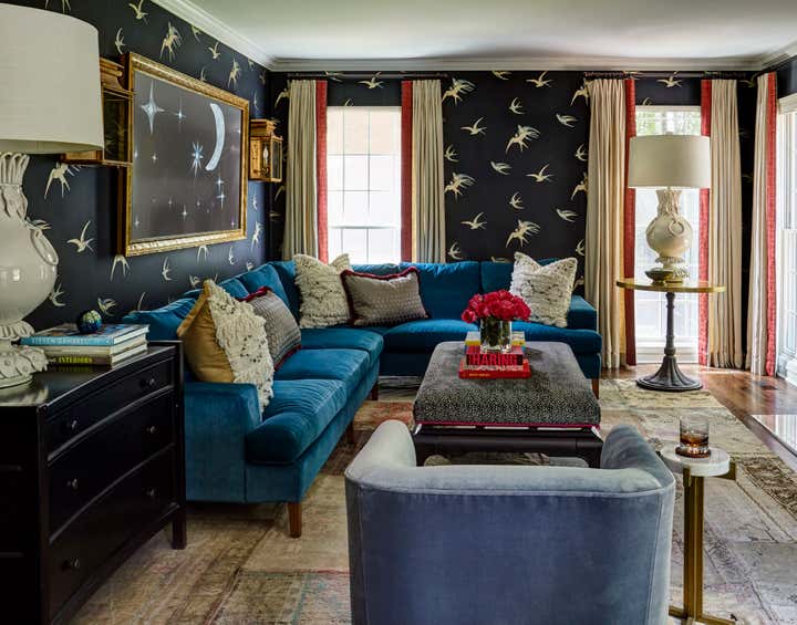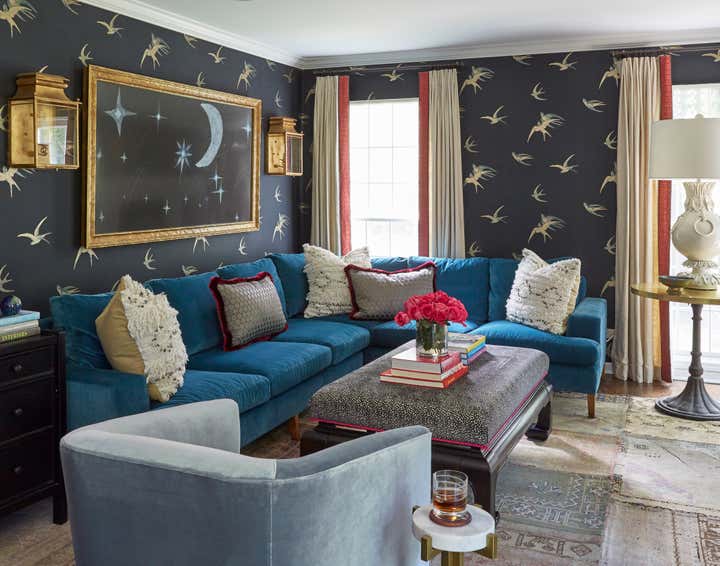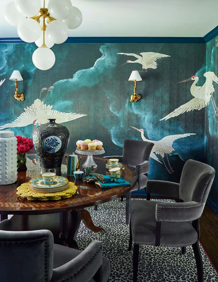 Her goal was to have a happy, bright home that said “this is me, world!” and one that made her kids feel cozy enough to roll around and have friends over. Once she purchased the house, we pulled the trigger on everything (and we’re still finishing work with new projects around the corner…there are several rooms that were not quite ready when we had this photo shoot!). Ultimately the house is a layering bonanza of wallpaper, jewel tone palettes, lighting, plushy bold textures and styles. This has definitely been one of the most fun projects I’ve ever had.