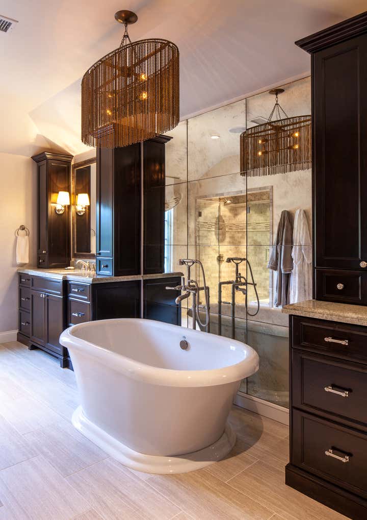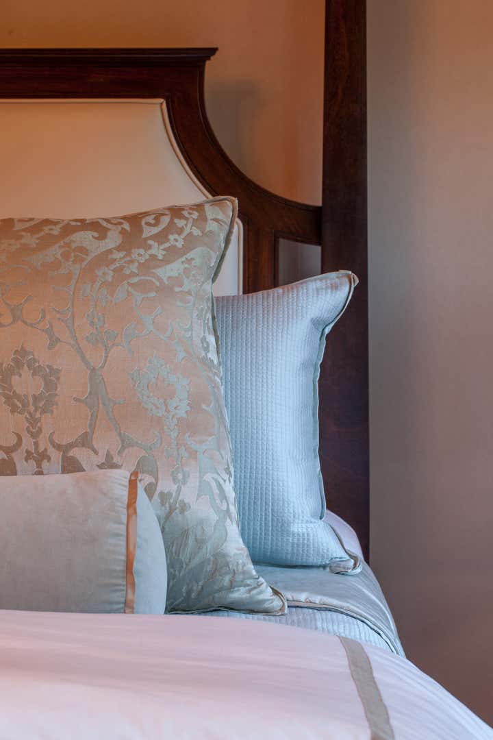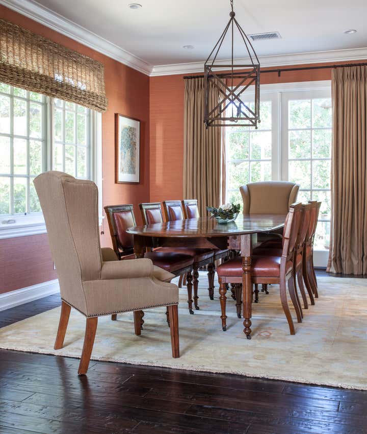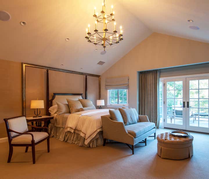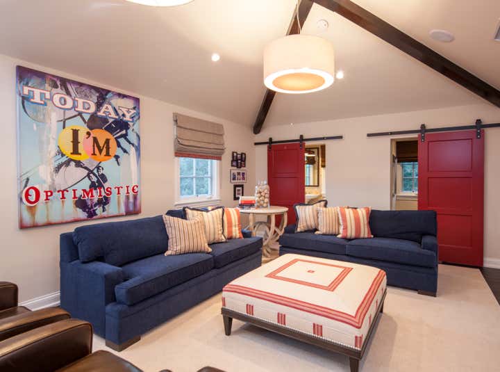A custom home for a family who loves to host parties and entertain. We directed all design decisions including all exterior spaces which include a sport court and regulation volleyball court. We specified and designed all interior architecture and created custom furnishings including furniture, lighting, art, and rugs and we integrated newly acquired antiques with existing antiques. We filled cabinets with a customized kitchen household package, personalized sheets and towels, and custom bedding. Our continued service to this client allows for us to consult on layout options and dressing tables for their many events.