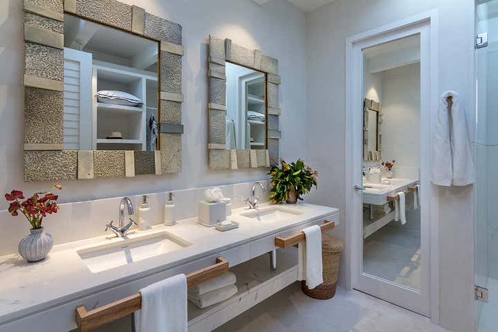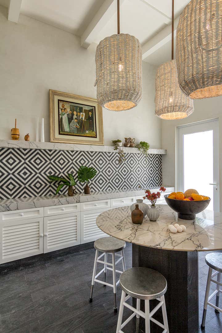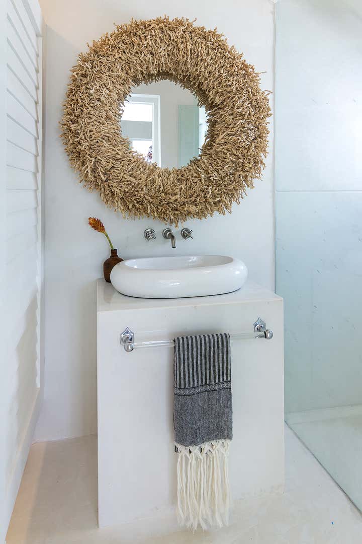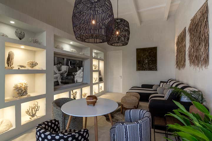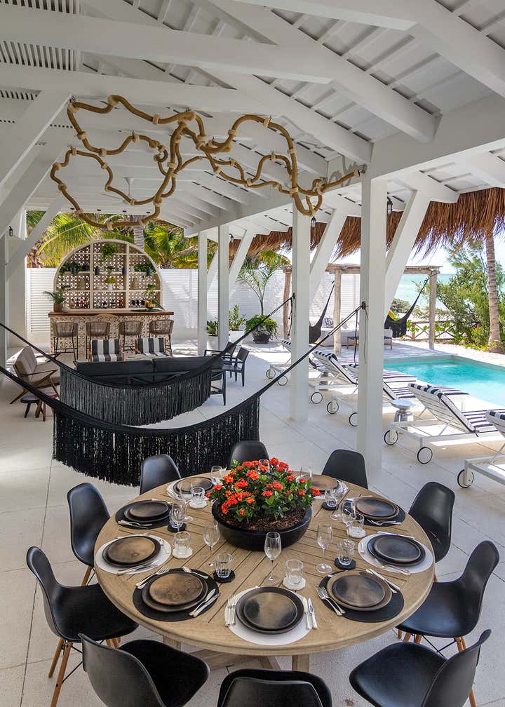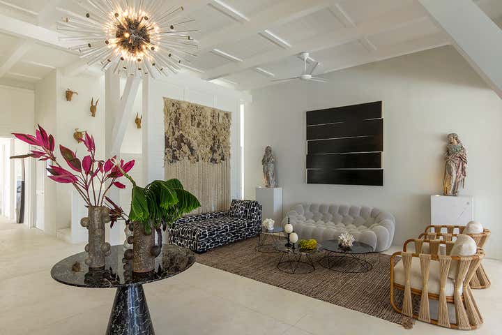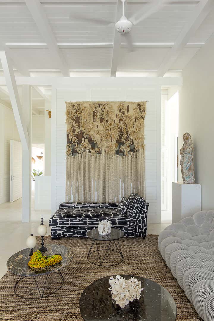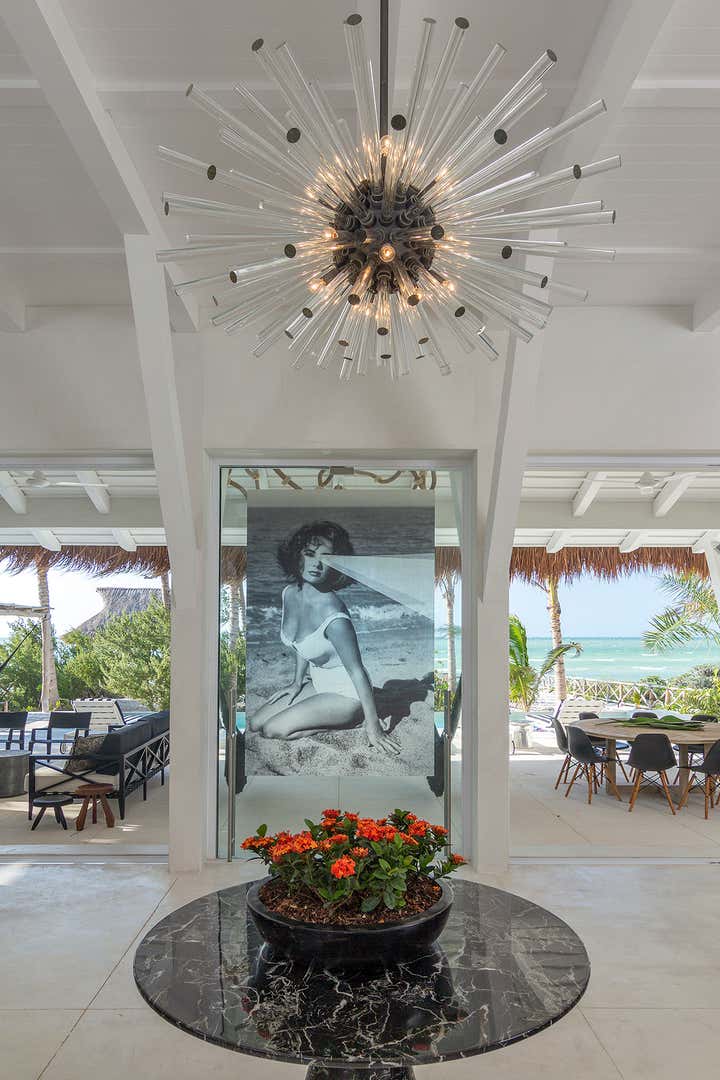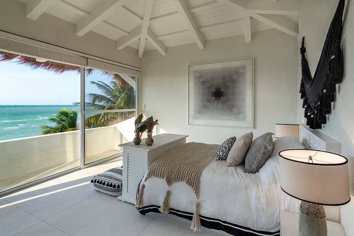 This monochromatic beach house is located in the coast of Yucatán. Architecture by Carlos Artigas, finishes and interior design by Sofía Aspe Interiorismo. A unique beach front residence with an eclectic style mixing Bahamas architecture with mid-century pieces and contemporary art.