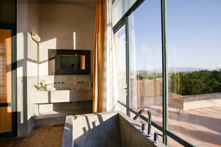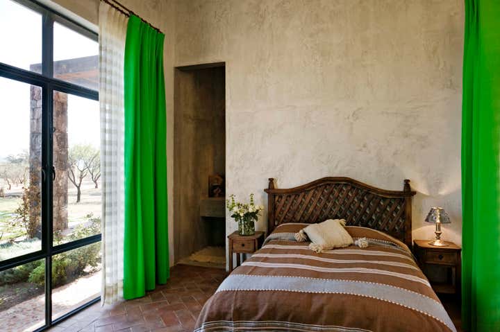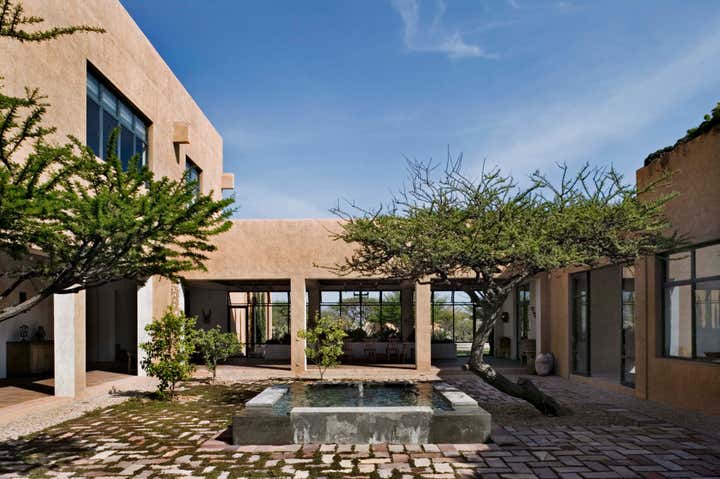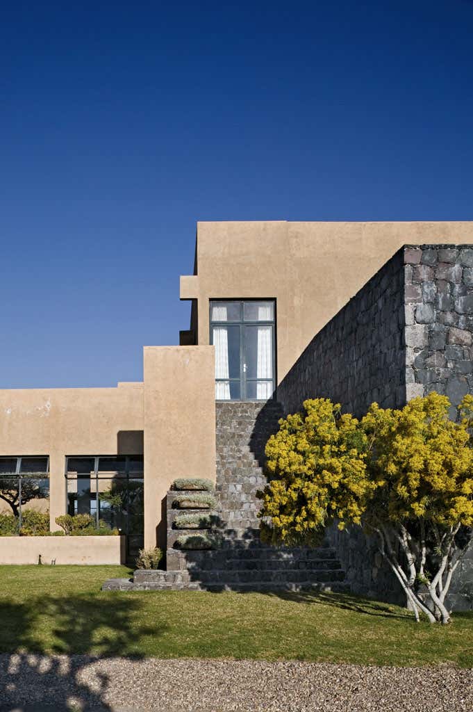 The 10,000 square foot courtyard house is situated on a plateau that served as a pilgrimage site for the indigenous people in the area of central Mexico. Using traditional construction technologies, this modern retreat is an updated Hacienda with a hot-spring fed swimming pool. All work was done with locally available materials and local artisans. This retreat is an elemental experience that all play host to architectural design and combine to soothe senses embattled by technology and is an intensely serene reinvention of traditional Mexican hacienda architecture, borne out of Middle Eastern courtyard via Spain. Architect: David Howell in collaboration with owner, John Houshmand Project Designer: Steffani Aarons www.retreatmexico.com Local Project supervisor: Patsy Dubois / www.patsydubois.com Photography by David Joseph www.davidjosephphotography.com/