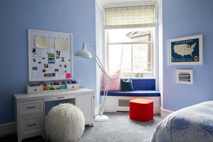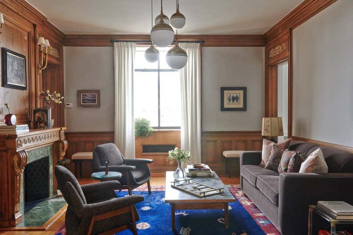 A unique penthouse on Central Park West fuses historic architecture with modern living. Antique furniture, contemporary lighting and selective pops of color combine to create a thoughtful and unexpected atmosphere that welcomes adults and children alike.