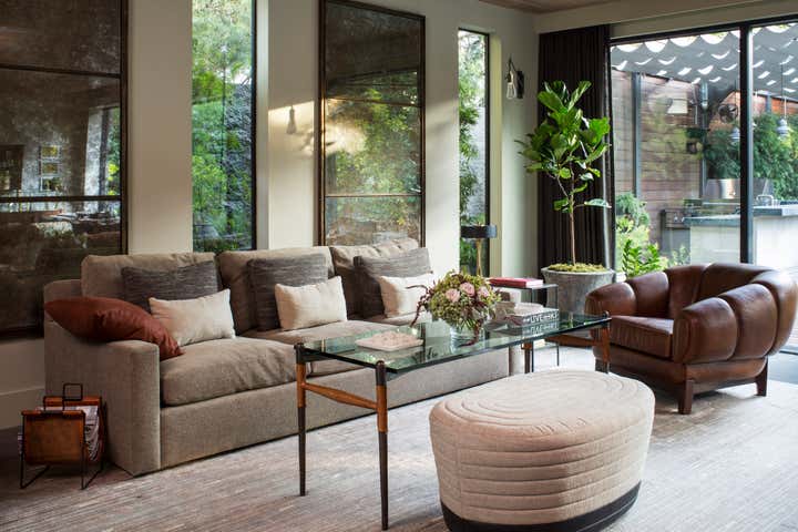For our next performance, a prominent Hollywood director asked Deirdre Doherty Interiors to create a haven that was cozy, functional, and family-friendly while able to handle big parties. To do it, we opened the intimate interior to a party paradise exterior with sliders leading to a pool, Jacuzzi, fire pit, and barbecue.