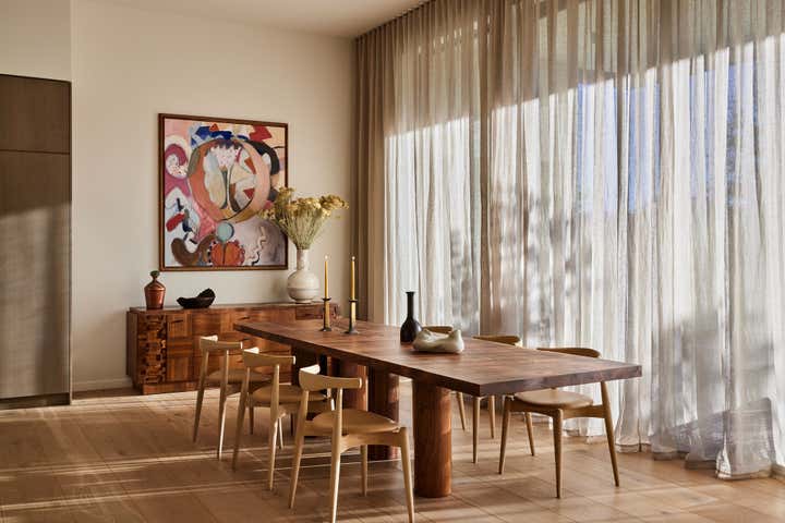Each detail of this special home was lovingly crafted in collaboration with kin. With many of the custom furniture pieces sourced from Epperson’s brother, furniture designer, and builder Barrett Karber, the integration of various family skills and heirlooms into the design creates a truly bespoke, forever home for the architect and interior designer s parents. The resulting open floorplan captures key vista moments to emulate the experience of camping while elevating kinship and family rituals.