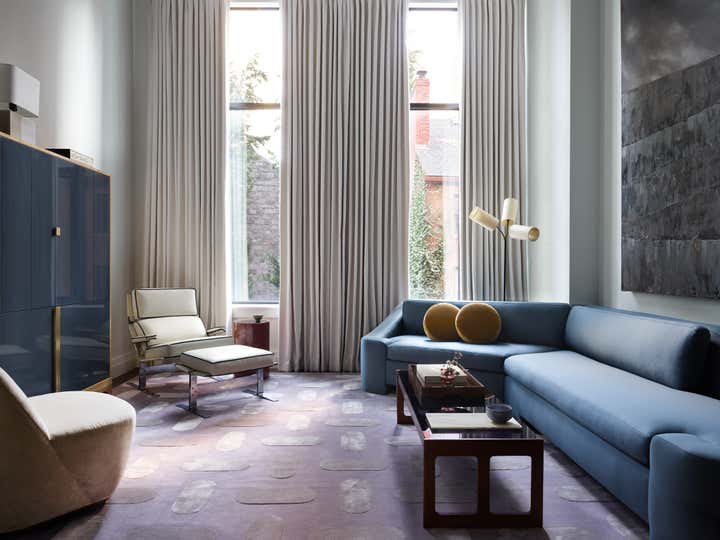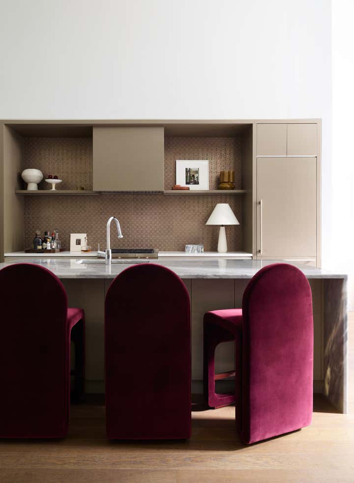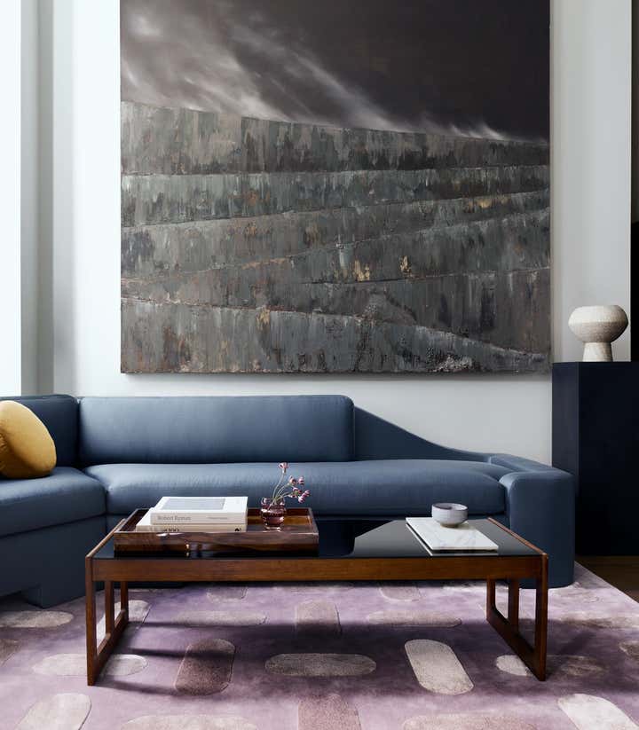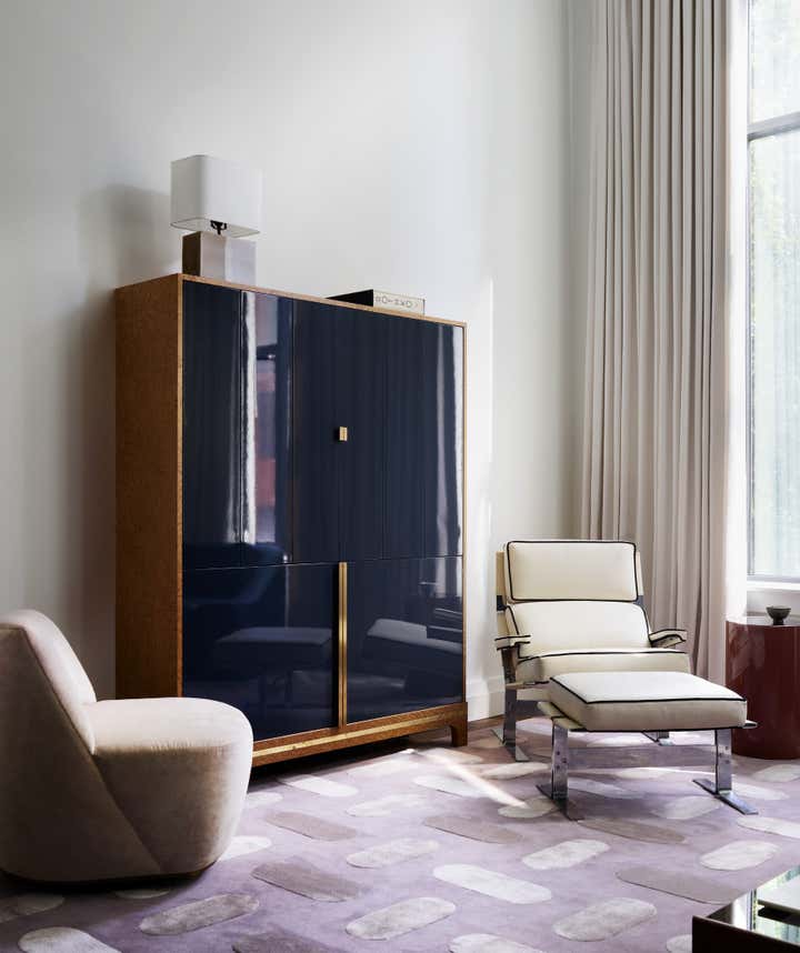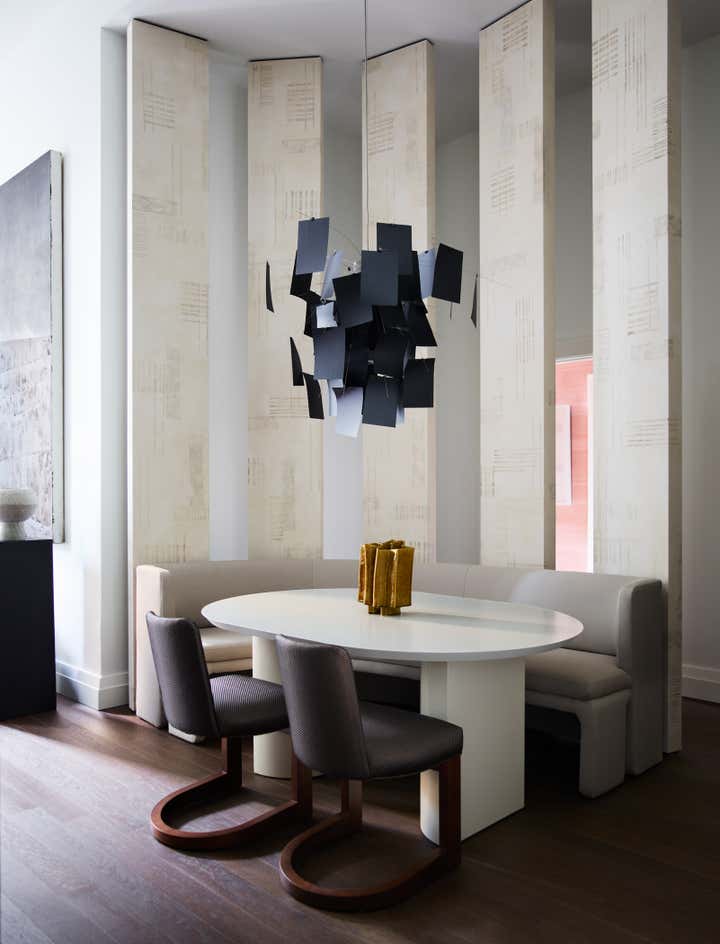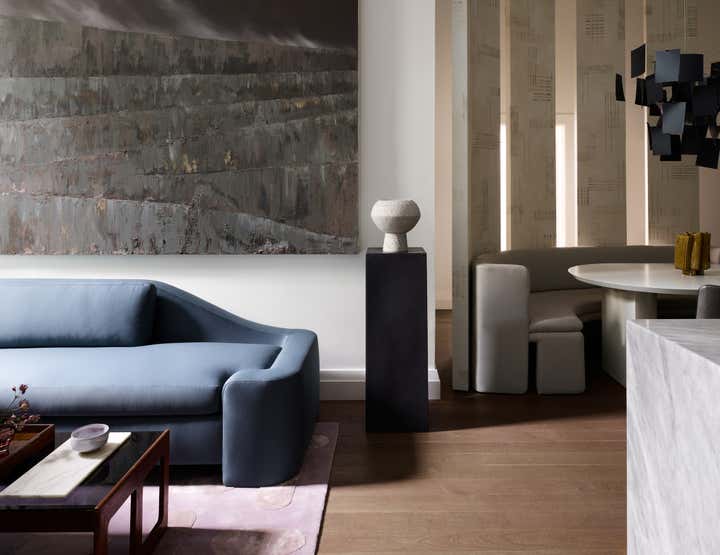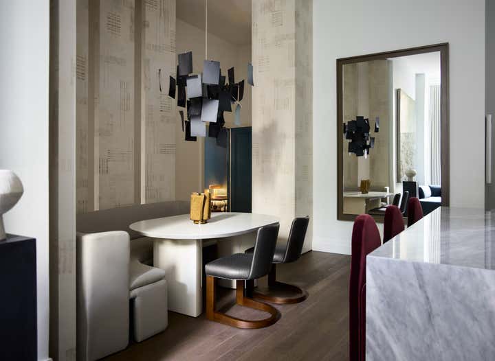 This sophisticated escape in the heart of the city is designed for play and entertaining. The gallery-like proportions of the 1920’s Classical Revival building inspired sculptural custom furnishings, mid-century finds, and a curated art collection from contemporary artists. Renovation included a kitchen makeover, new curved wall of pillars to define a dining space, and authentic millwork upgrades in the bedrooms. As seen in House Beautiful magazine May/June 2023.