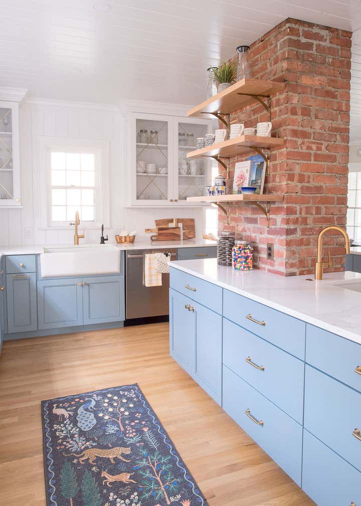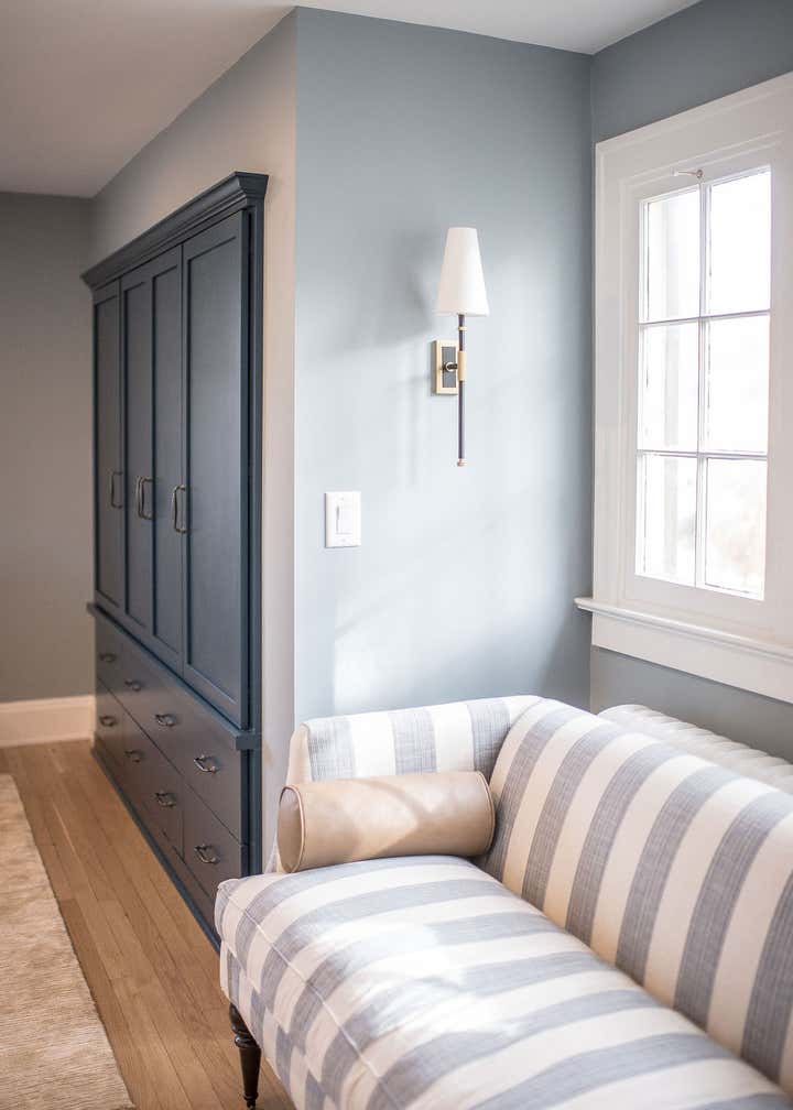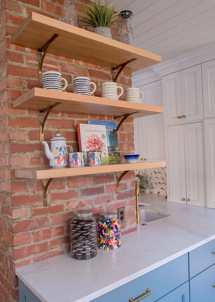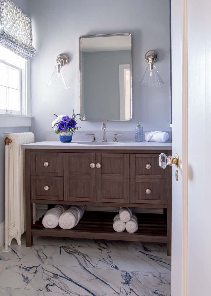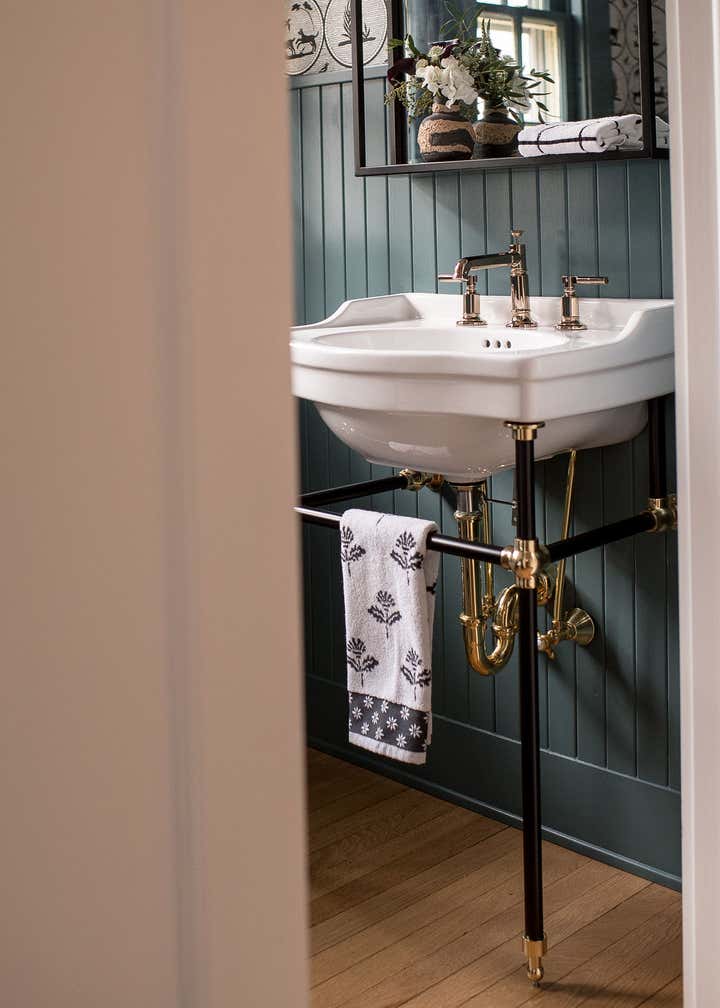 In this 1920’s Dutch Colonial, we overhauled the kitchen dining room to create one large open concept entertaining space. We converted a portion of the entryway into a moody powder room, updated the guest bathroom, and remodeled the primary suite. Our clients wanted unique touches and a little whimsy while staying true to the homes traditional era.