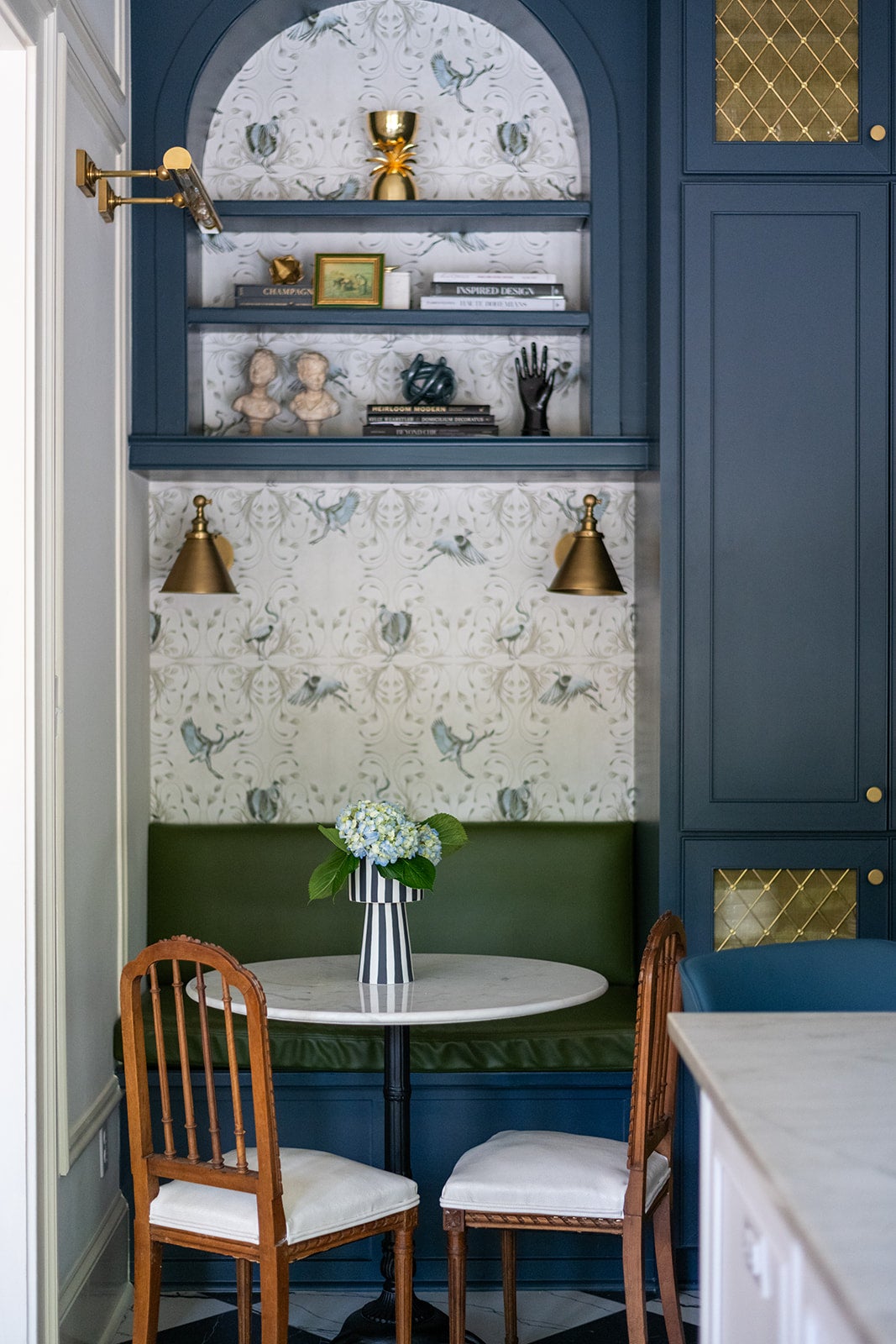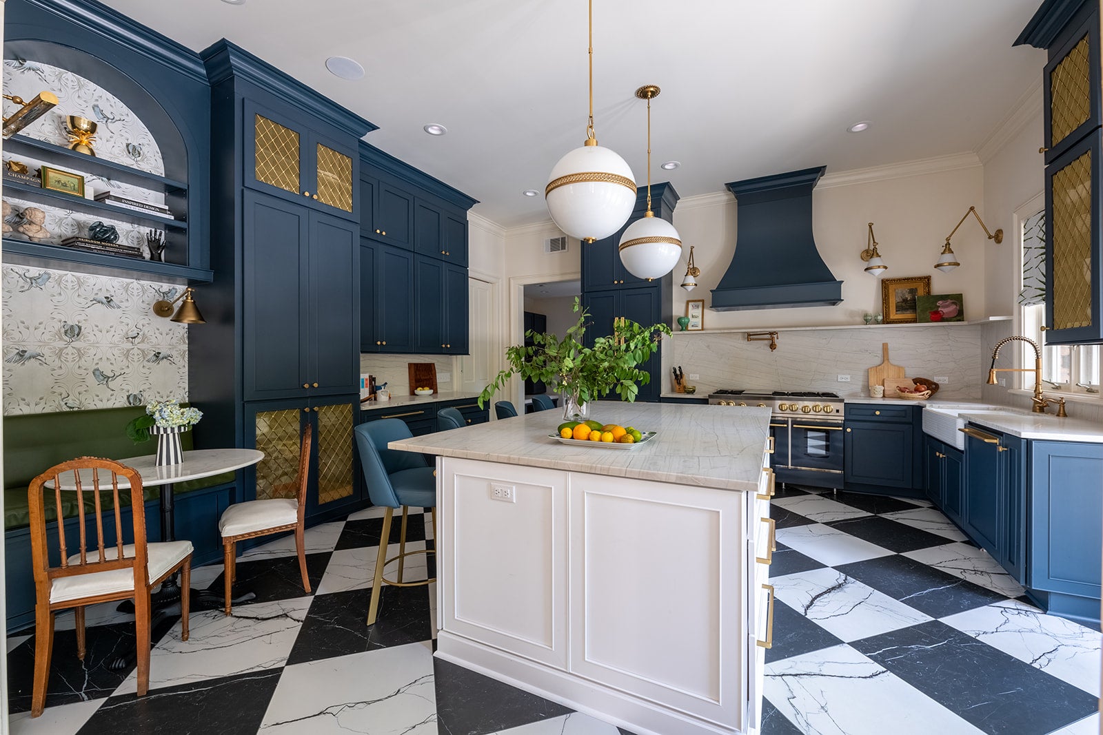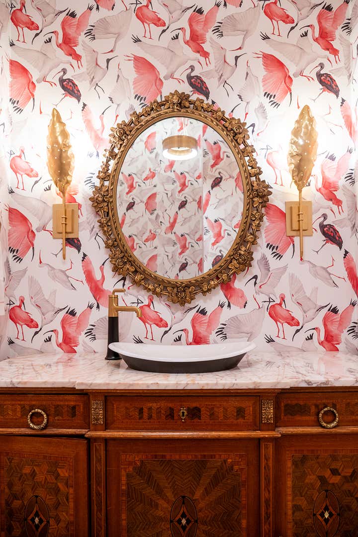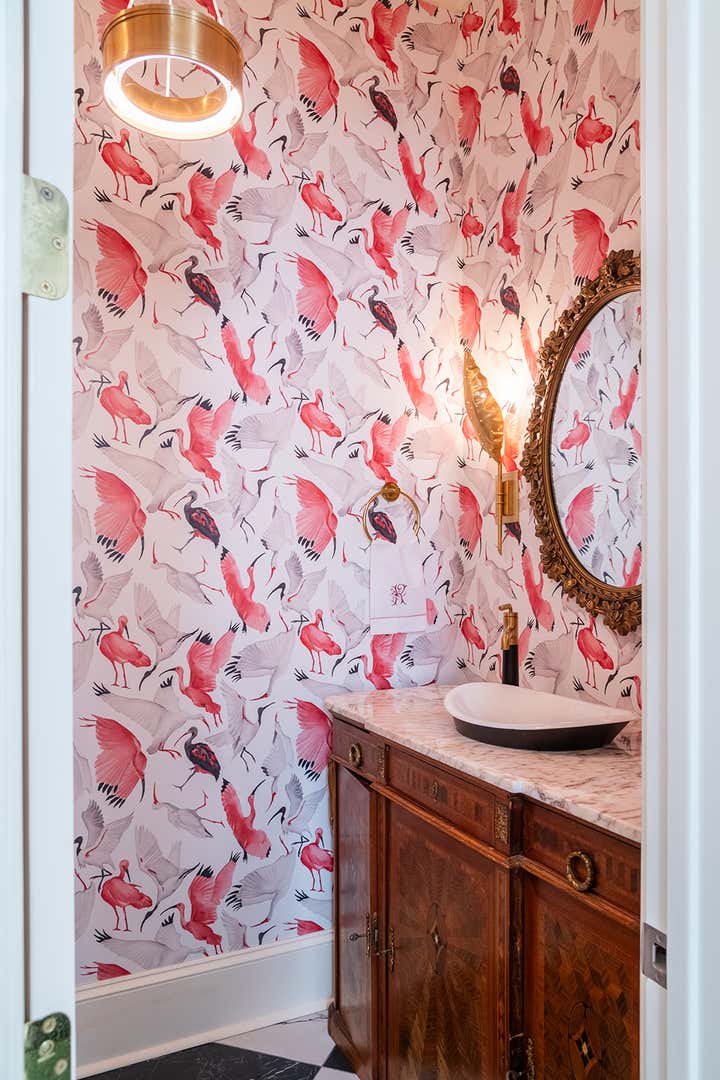 This residence embraces bold color, pattern, and craftsmanship while honoring classic architectural details. Custom millwork, vintage furnishings, and sculptural lighting are layered with playful wallpaper moments and rich finishes throughout the home. The result is a space that feels refined yet expressive - balancing tradition with personality and a distinctly livable approach to design.