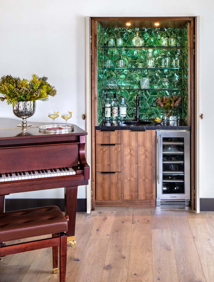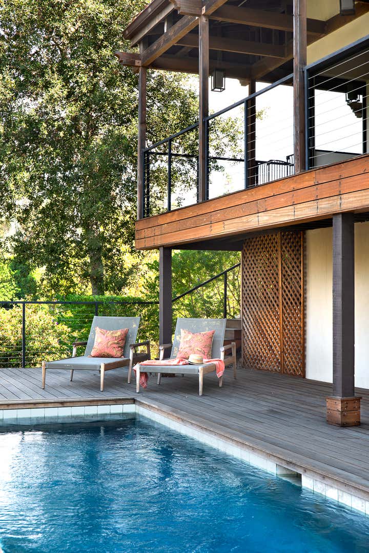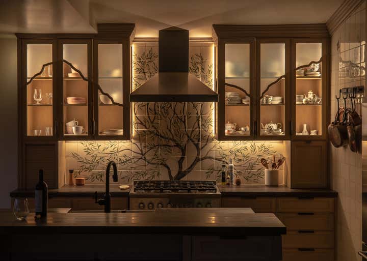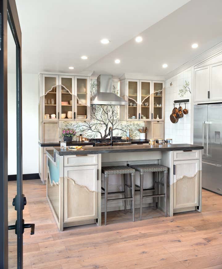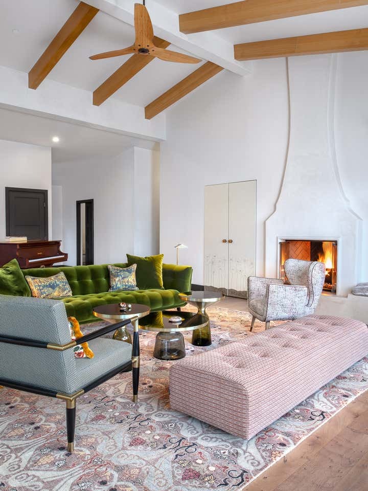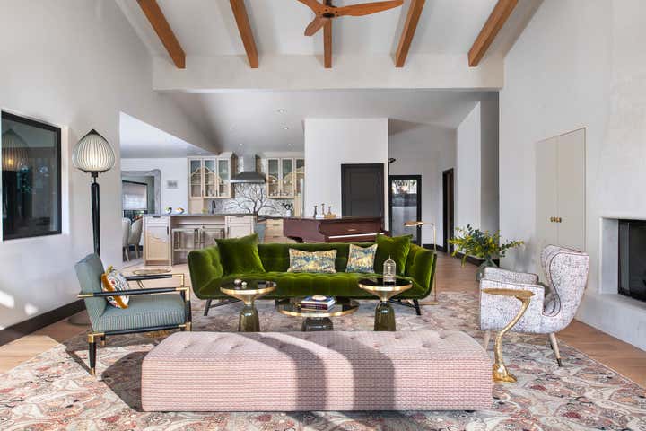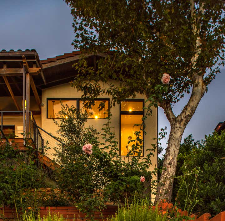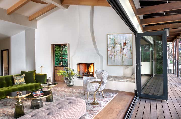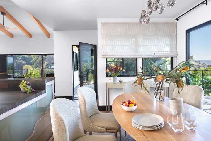 This Mediterranean bungalow offers sweeping views of the Hollywood Hills due to its cantilevered construction. To meet their budget priorities, Genevieve designed the home in a few phases and, despite the time lapses, created a harmonious flow amongst the spaces with the feeling of an “eclectic treehouse”.