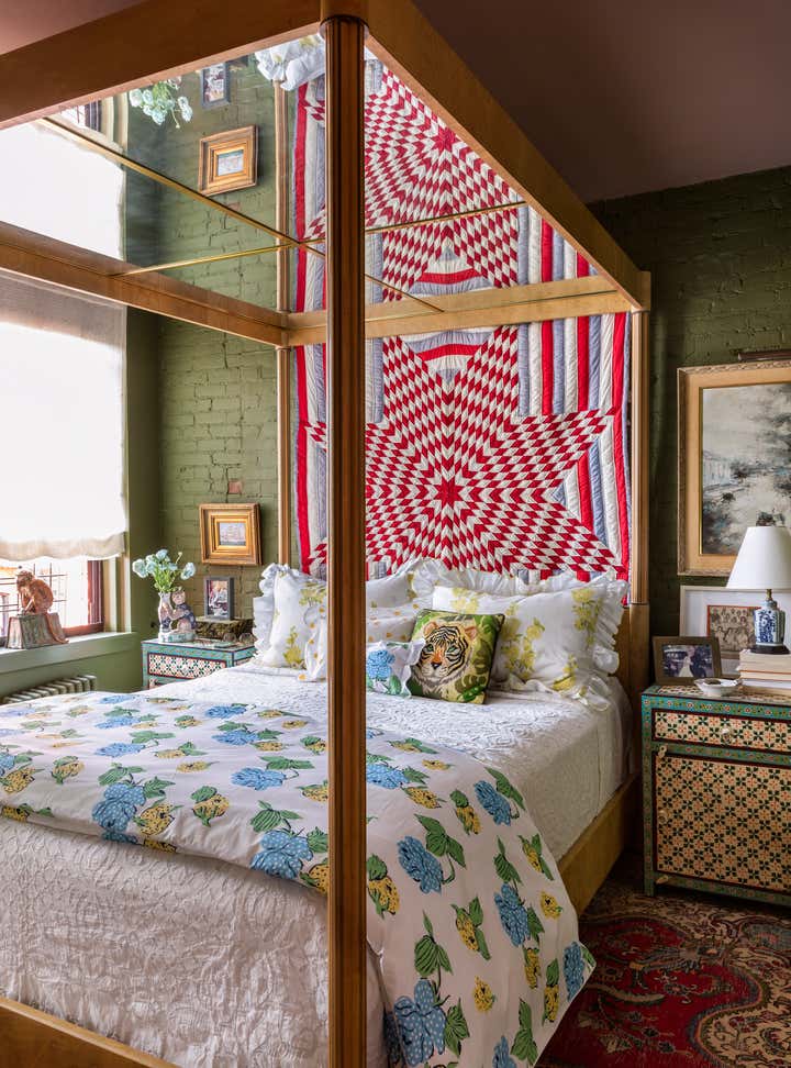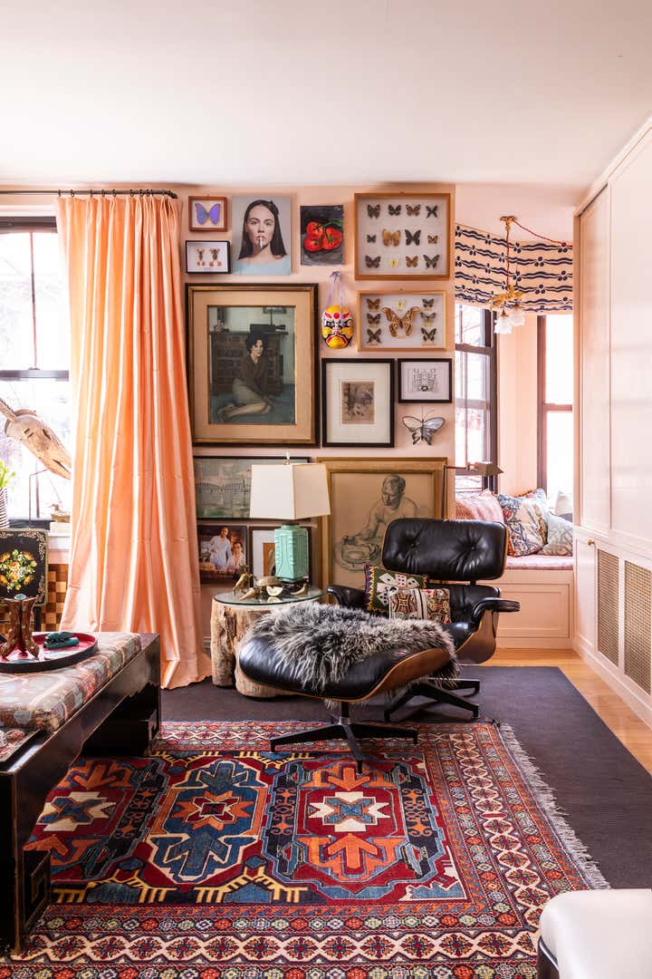 Designer, Erin Fearins home in Brooklyn. Richly layered with a mix of vintage furniture pieces, carefully curated art and antiques, the Fearins historic home has been renovated to include custom millwork and special touches throughout. This home was recently featured on the cover of Brownstoner magazine.