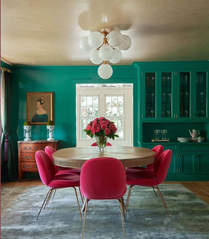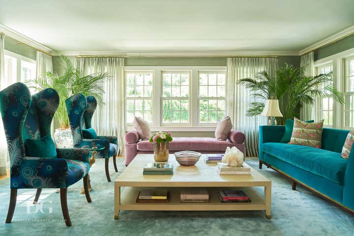 For this home renovation project, we created a vibrant, color-saturated interior to surprise and delight visitors to this traditional colonial home. The colors for each room were chosen to reflect the owner’s love of the spiritual and desire to create a unique nest for her family. Elements such as furniture, textured wallpapers, carpets, drapes, and lighting fixtures were hand-selected to contribute to the overall custom interior design.