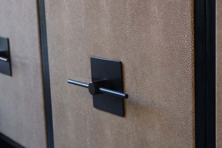 We replaced the floor throughout to help to stretch the space and incorporated storage for the Clients.