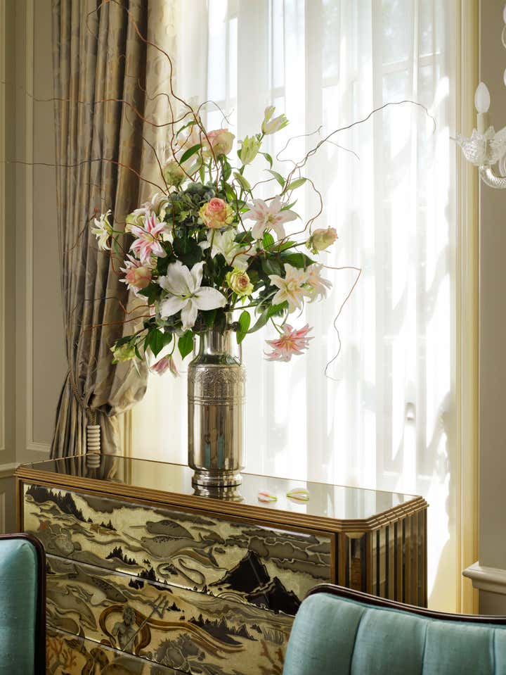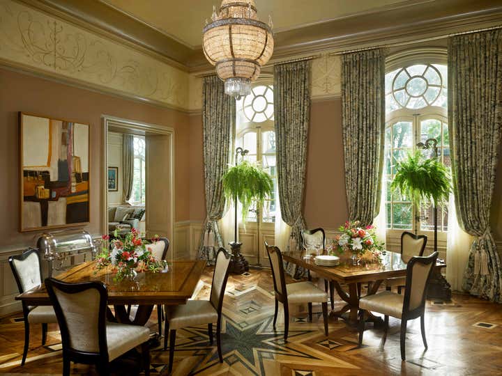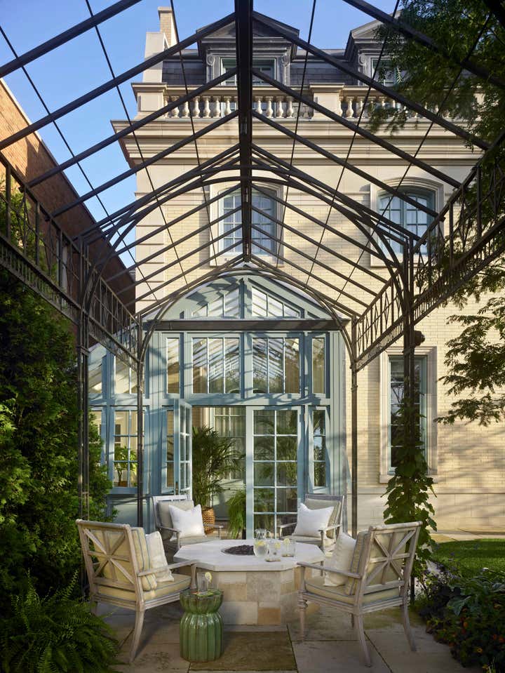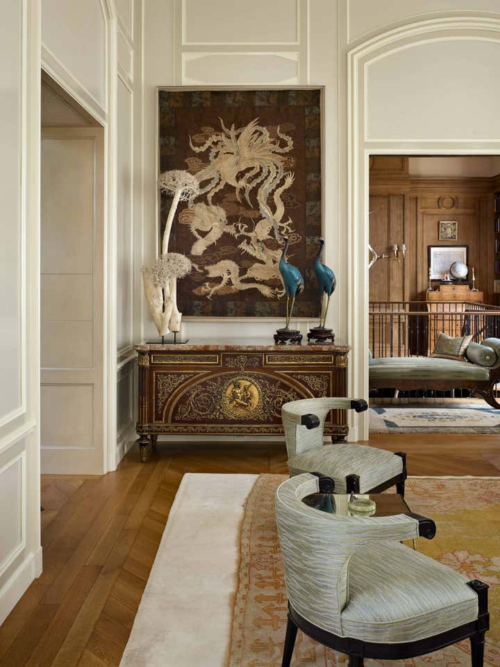 From its English-style conservatory to its wealth of French doors, this impressive family home – at once stately, yet welcoming – ushers the vitality of its premiere urban setting into historically-inspired interiors. Here, soaring ceilings, inlaid floors, and marble-wrapped, walnut-paneled, and mirror-clad walls honor the luxurious traditions of classic European interior architecture. Naturally, symmetry is its muse, evinced through a striking collection of fine furnishings, splendid rugs, art, and accessories – augmented, all, by unexpectedly fresh bursts of color and playfully retro silhouettes. Formal without intimidation -or apology- it personifies the very finest in gracious city living.
