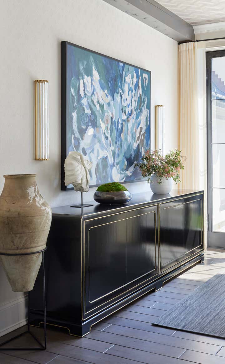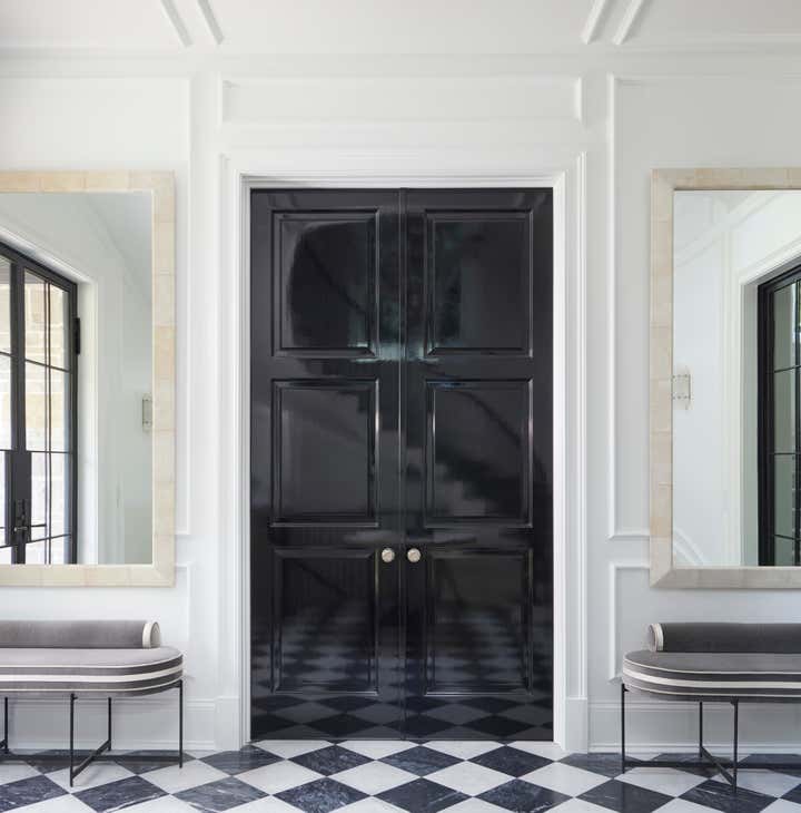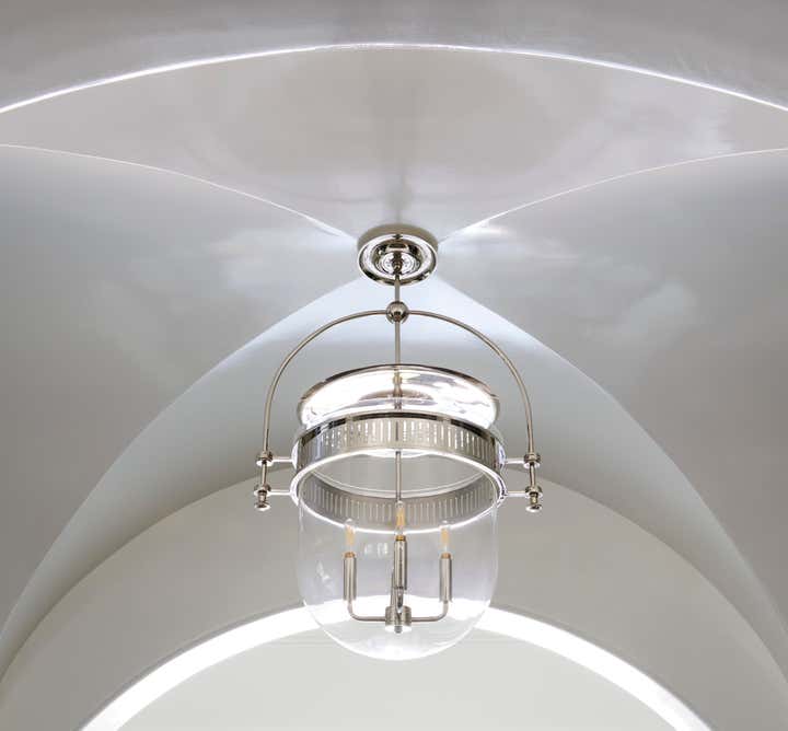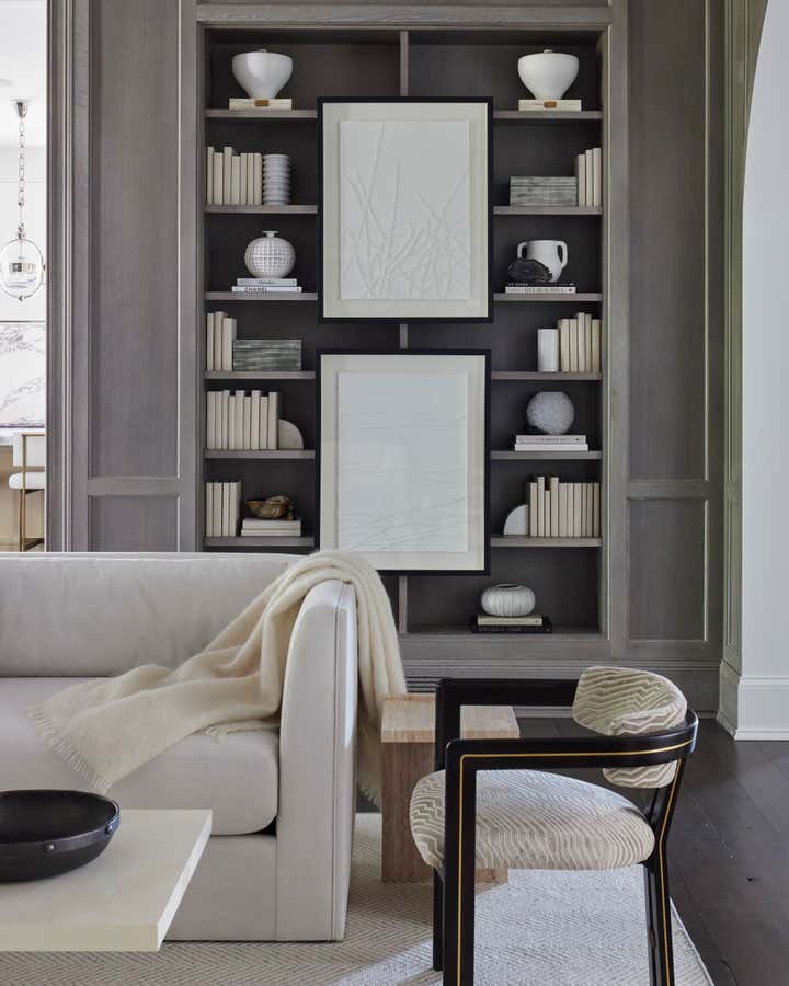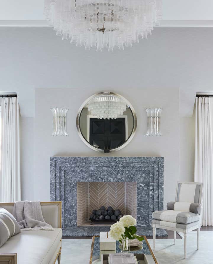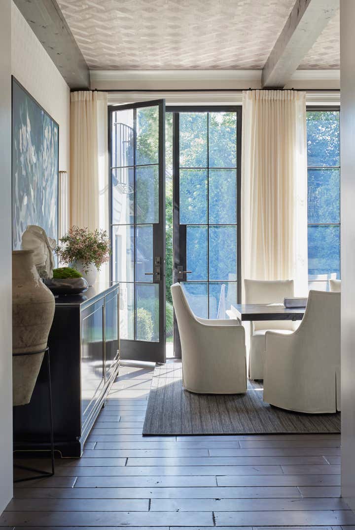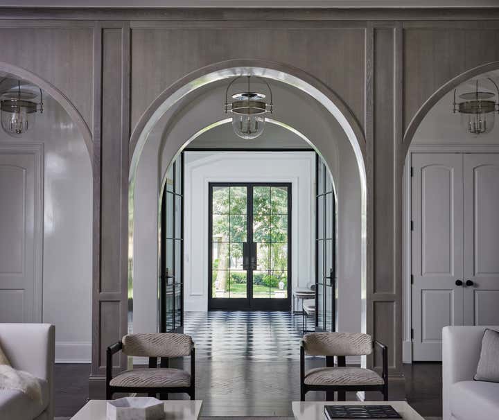 Our firm was asked to transform this home’s interiors from a prior owner s vision and into their own with an intense focus on bringing back the Classics in the interior architecture with a contemporary eye to achieve the highest level of comfort and historical references to European grandeur. After carefully crafting an entirely new floor plan layout including moving and closing walls, forming full arches and hidden doors for entertaining yet everyday function, we turned our attentions to the soulful commingling of patinated antiques paired with sophisticated modern living, creating an elevated elegance that will be a prized possession fit for generations to come. Whether admiring the kitchen’s oversized waterfall island or the side entry turned jewel box with suede walls and brass strapping, each room’s deep appreciation for sculptural lines and inviting warmth creates a refined yet welcoming atmosphere.