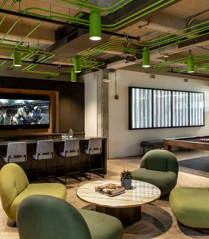 It’s hard to be brilliant in a drab office. So when it came time for AGBO to create their new creative hotbed, they called Deirdre Doherty Interiors to make sure they popped. Set in downtown L.A.’s historic City Market South (L.A.’s oldest produce market, reimagined with dining, retail and offices), the location alone is an inspired break from Hollywood convention. We’re taking it further, flipping the script on the typical office with a layout and interiors that feel like home—if home had a meditation room and a full gym next to the writers’ room. You never know where the next big movie will come from, but we’re betting it’s from a plush couch overlooking City Market South.
