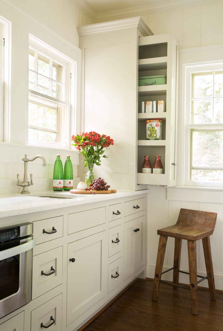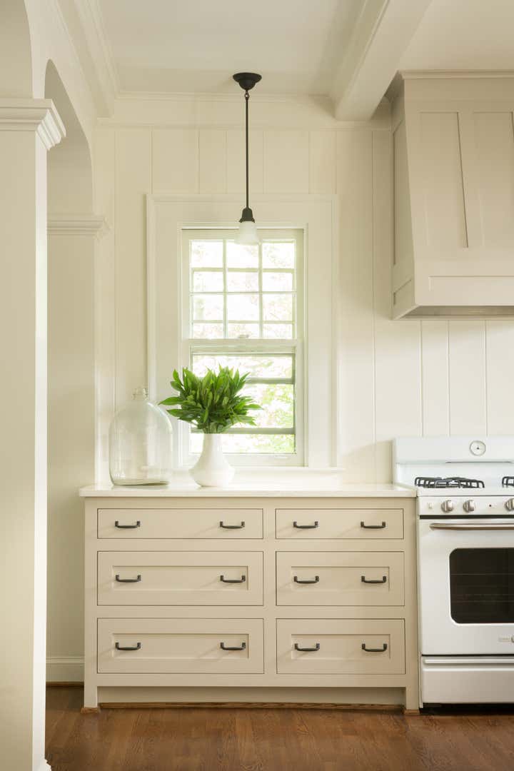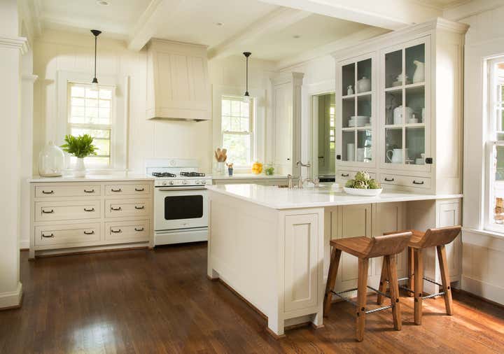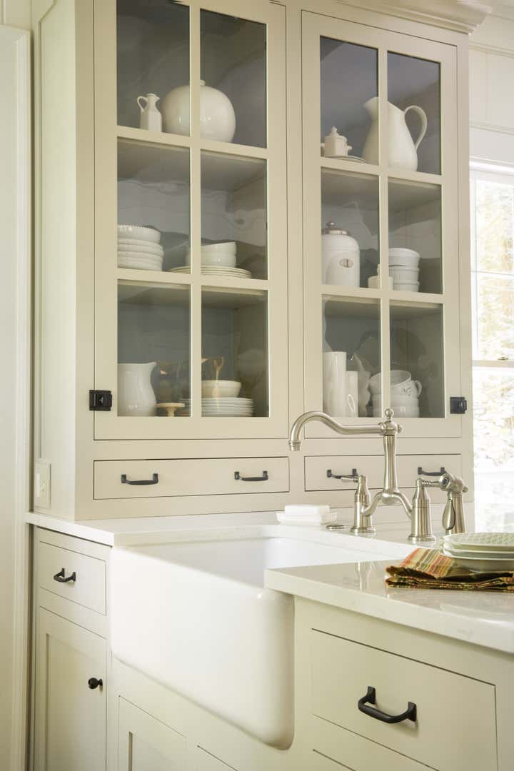 An interior remodel of this Tudor is now perfectly crafted for this family of two. Moving the kitchen and butler’s pantry to the other side of the house allowed the homeowner to finally have enough space for a master suite complete with a walk-in closet and large bathroom. It was essential to the client that we select materials that were simpatico with the history of the home. To achieve this, we brought in elements like inset cabinetry, an apron front sink, vintage-inspired appliances, and glass front wall cabinets. What resulted was a refreshing, bright and modernized home that is current, but also true to its historic nature.