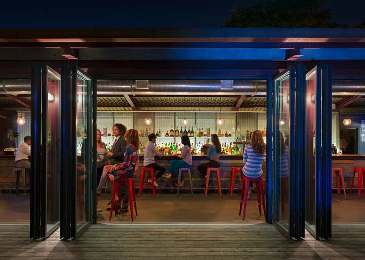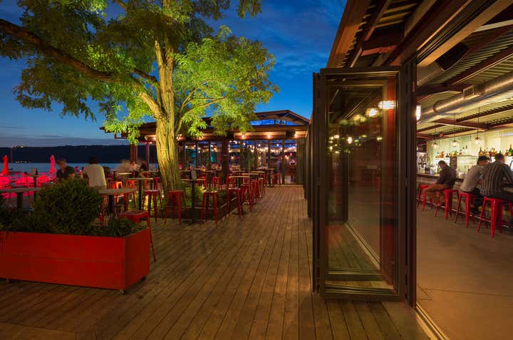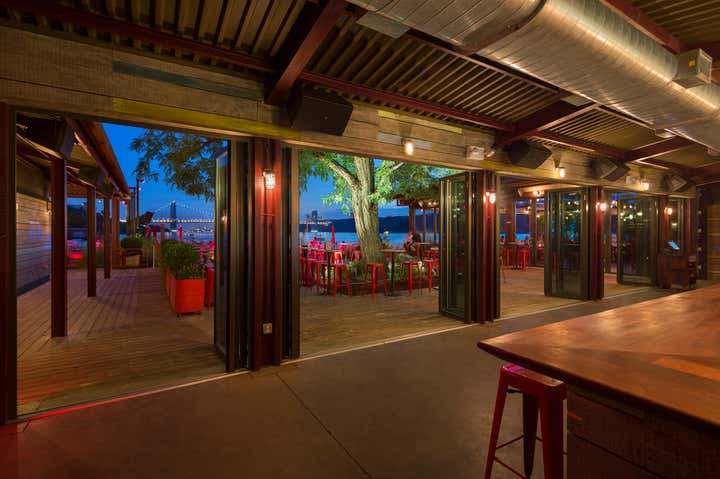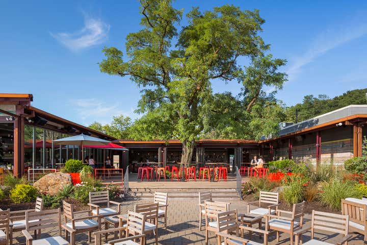 A new complex of restaurants and public amenities alongside the Hudson River centers on an open courtyard, its buildings low and casual and designed to dissolve into the beauty of the waterfront site. Opening glass walls blur the separation between indoors and outdoors, while natural hues of weathered wood, rusted steel and plant-covered walls echo the area’s vernacular waterfront architecture. Building materials had to be readily available, inexpensive and durable to withstand both the marine environment and heavy wear from daily use.