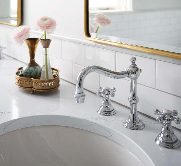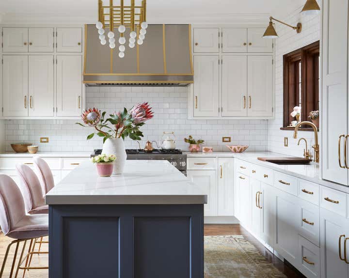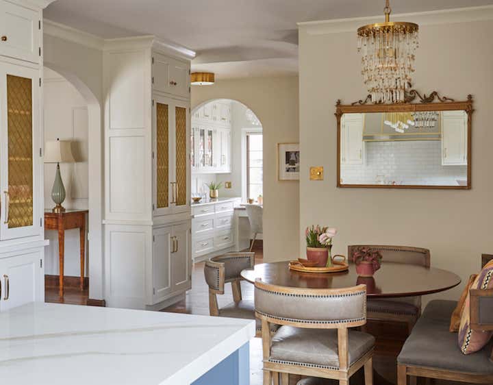 This vintage Tudor home had all the original details in many of the rooms, but the kitchen had a bad 90’s remodel that desperately needed to be fixed. The original kitchen was dark and dated, whereas the breakfast room addition had all the natural light – so naturally our first instinct was to flip the rooms. The KLI team also converted the original breakfast room into a butler’s pantry and renovated the mudroom and master bath. Removing an oddly placed closet, opening up the kitchen to the dining room, raising the dropped ceiling off the butler’s pantry and adding arched openings to match the rest of the house brought charm back part of the home. There was a lot of structural work to be done, since the prior renovation had been done on the cheap. Custom cabinetry, finishes and fixtures provided by KLI.