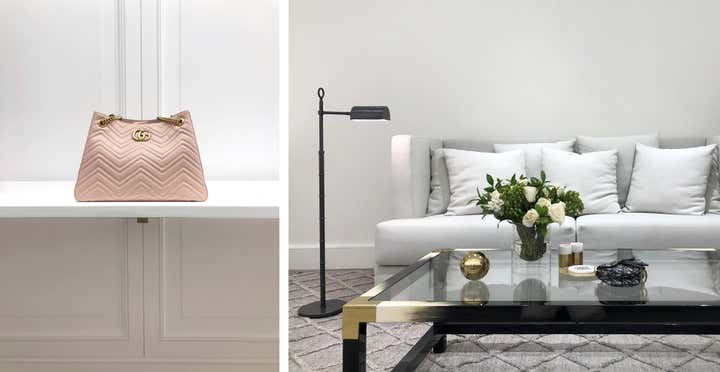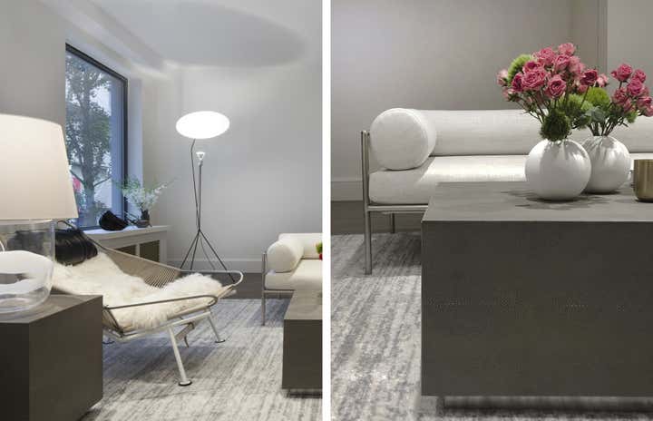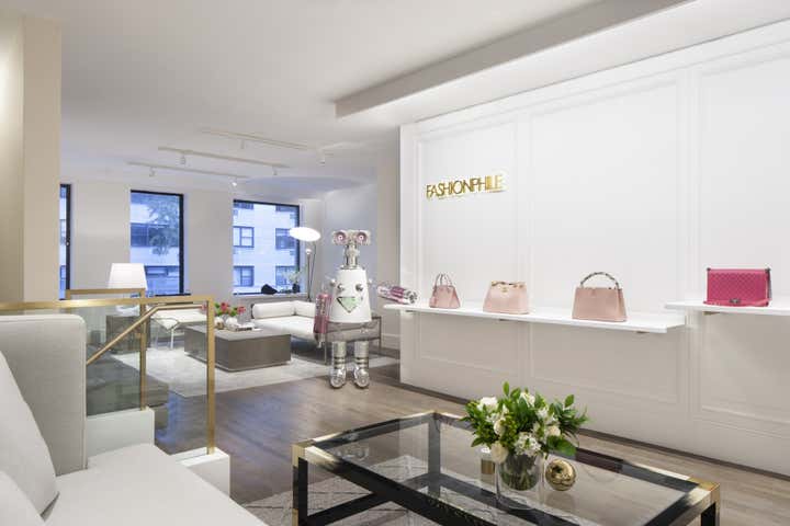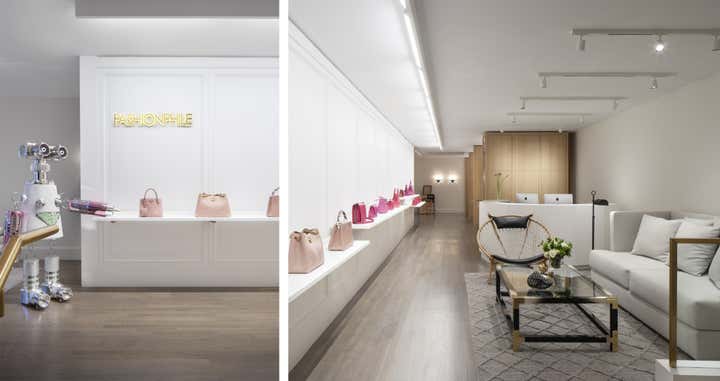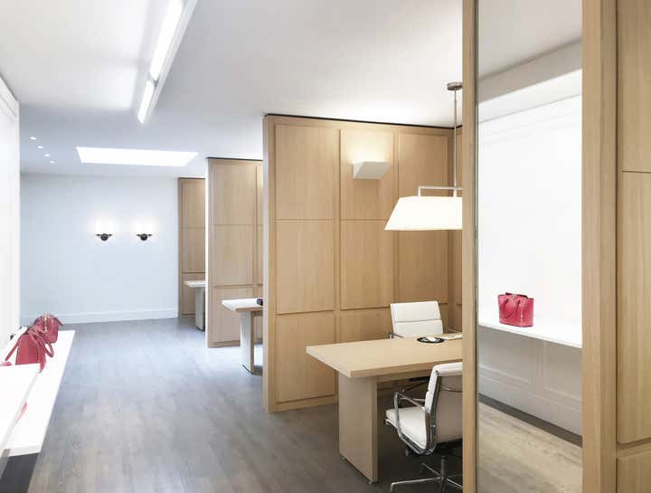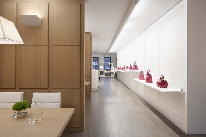 For the online retailer of secondary market luxury bags and accessories, ‘Fashionphile’, Uli Wagner designed and remodelled a second floor space on Madison Avenue in NY. Upon entering, the customer is welcomed by two generous and inviting seating areas, a reception and a playful feature display, that leads visually towards the back of the showroom; into a partitioned sales area, where the actual bag evaluation and trade between customer and Fashionphile personnel is taking place. The floor-plan was smartly developed to move as few walls as possible and maintain in principal its previous division between FOH and BOH. However we opened it up toward the windows facing the street and an existing skylight in the back; The intention was to make the space at daytime as bright and welcoming as possible. A well-studied lighting plan generates a similarly positive condition at night and secures good visibility of of the product display. A warm, differently textured material palette contribute to an overall pleasant atmosphere.