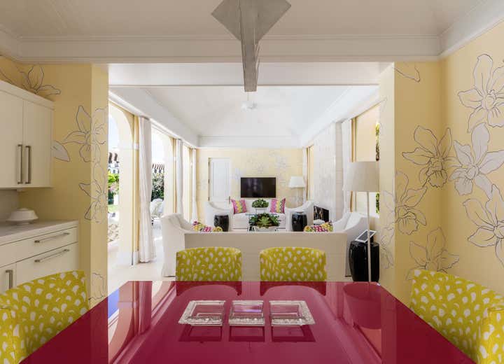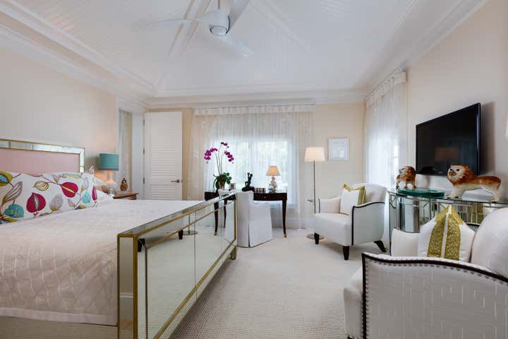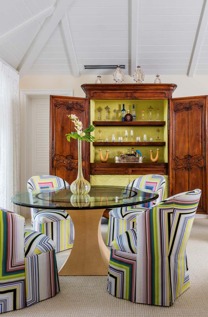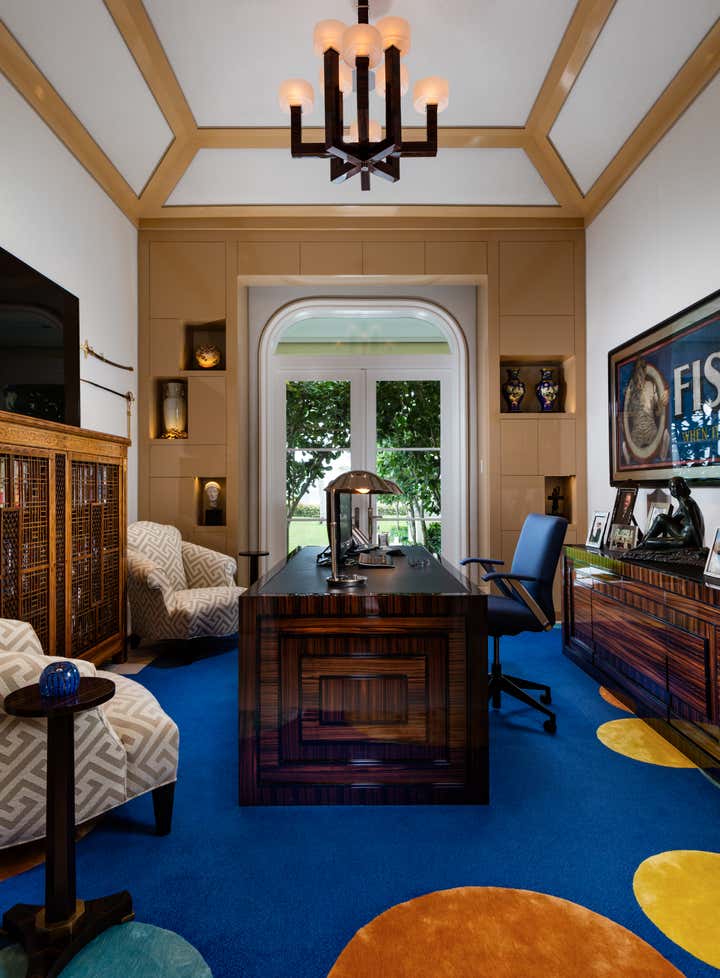 Transitional in style, this private residence located on Florida s sun-kissed coastline features highly customized interior and exterior spaces popping with saturated color. Traditional furnishings are paired with modern architectural elements, fine art and antiques to make each room delightfully eclectic.
