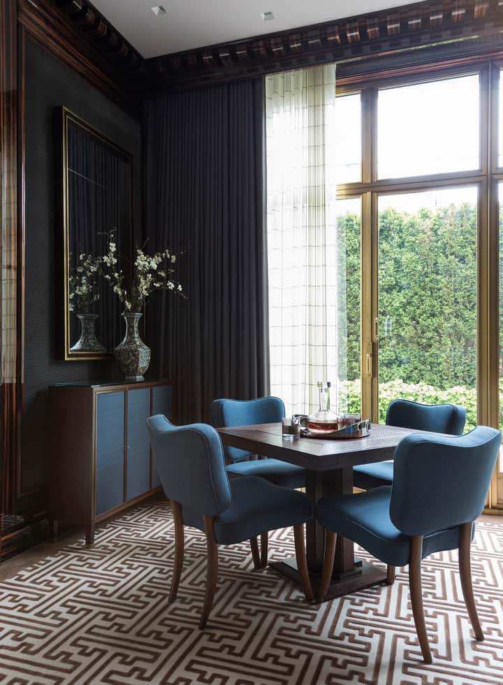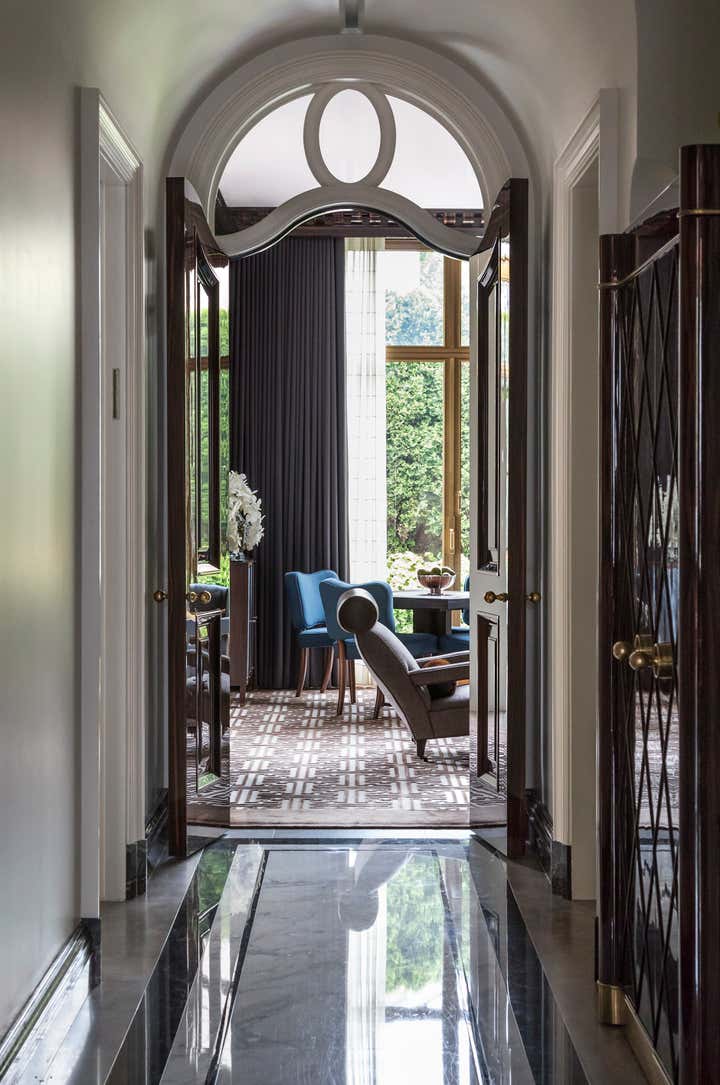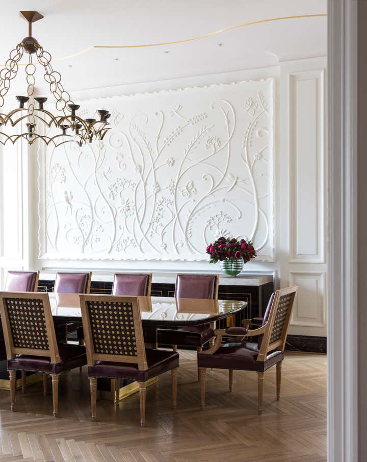 For our design of this elegant, sun-filled limestone mansion every detail was painstakingly considered. Adnet inspired metalwork, gilt-edged plaster ceiling details and a unique commissioned bas-relief are just a few of the numerous bespoke designs and details to be found throughout the house.