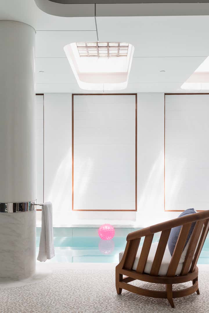 Every room reflects the sunny personality of the owners. Each space a combination of elegance and ease. For this multi-year project we enlisted a team of artisans and craftspeople who meticulously produced dozens of custom construction and decorative details; from the sky-lit below ground indoor pool, to the double-storied sitting room on the top floor, the result is a house unmatched in its commitment to craftsmanship and accommodation for the needs and desires of an active family.