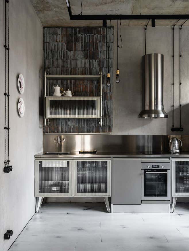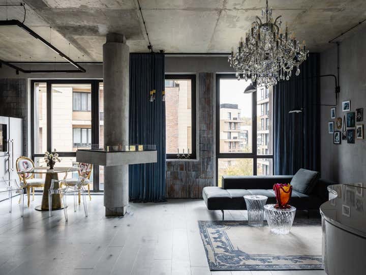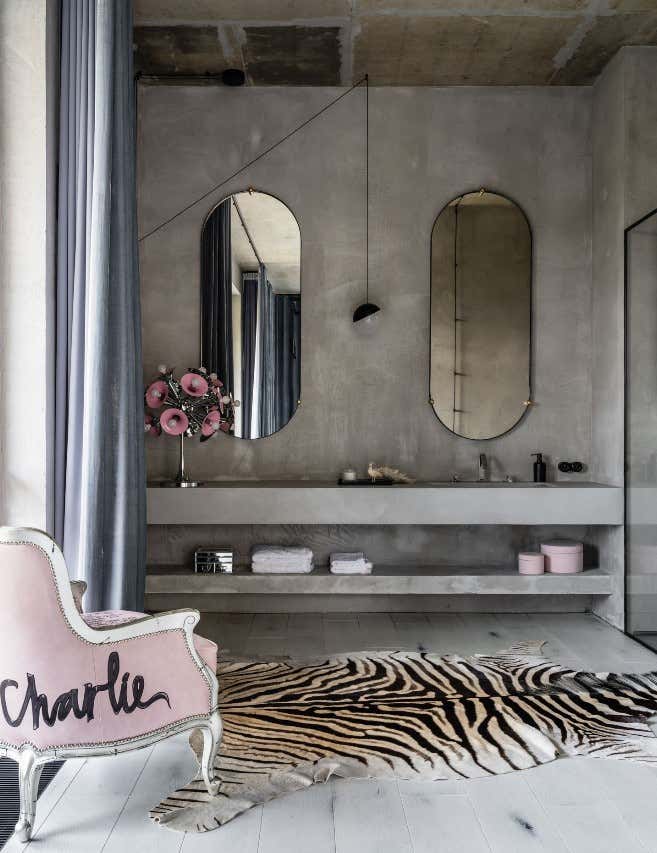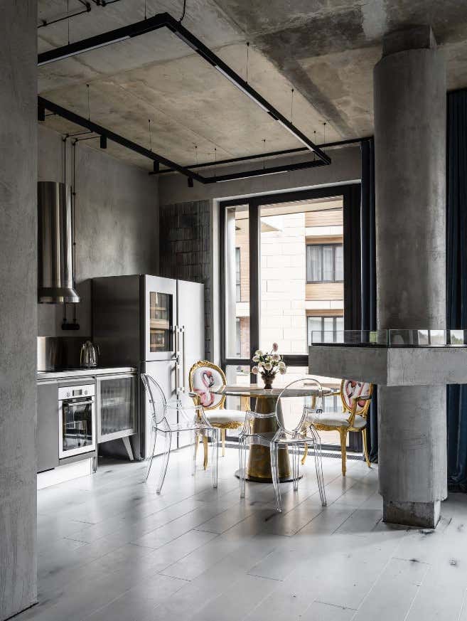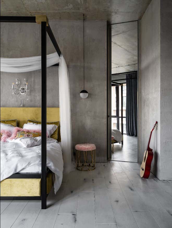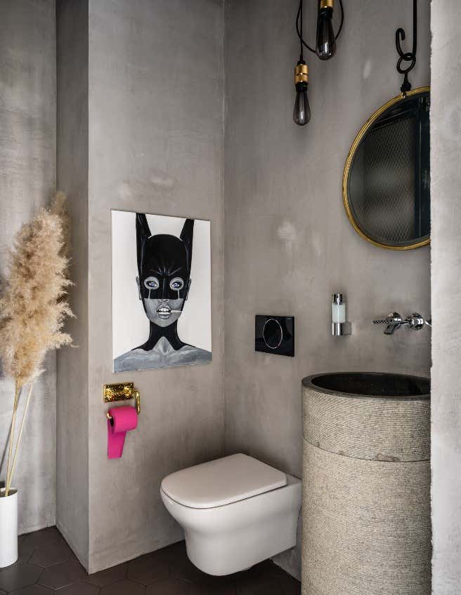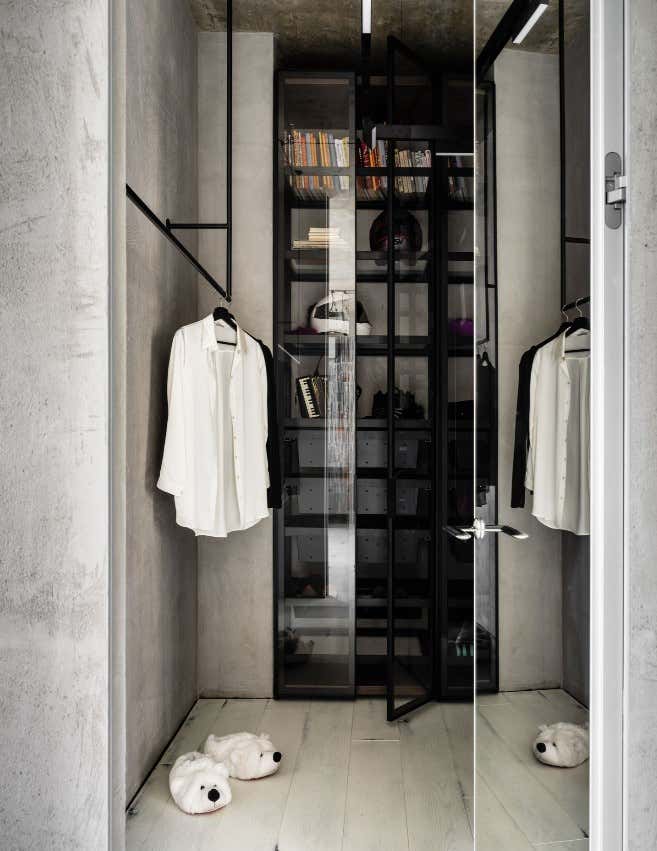 The project was created for a girl who drives a motorcycle and goes sailing. The interior is completely built on the contrasts of masculine and feminine principles - rough concrete combined with naive pink details. Each item was chosen with special love and as accurately as possible reflects the preferences of the client. The layout is completely open, there is only an isolated dressing room.