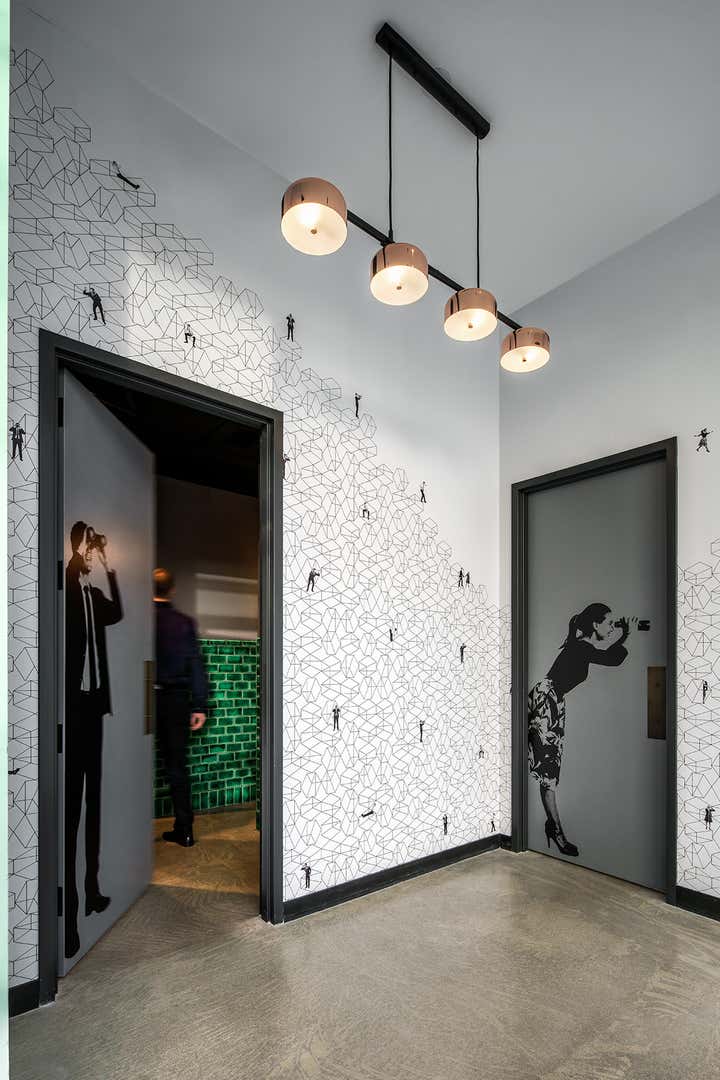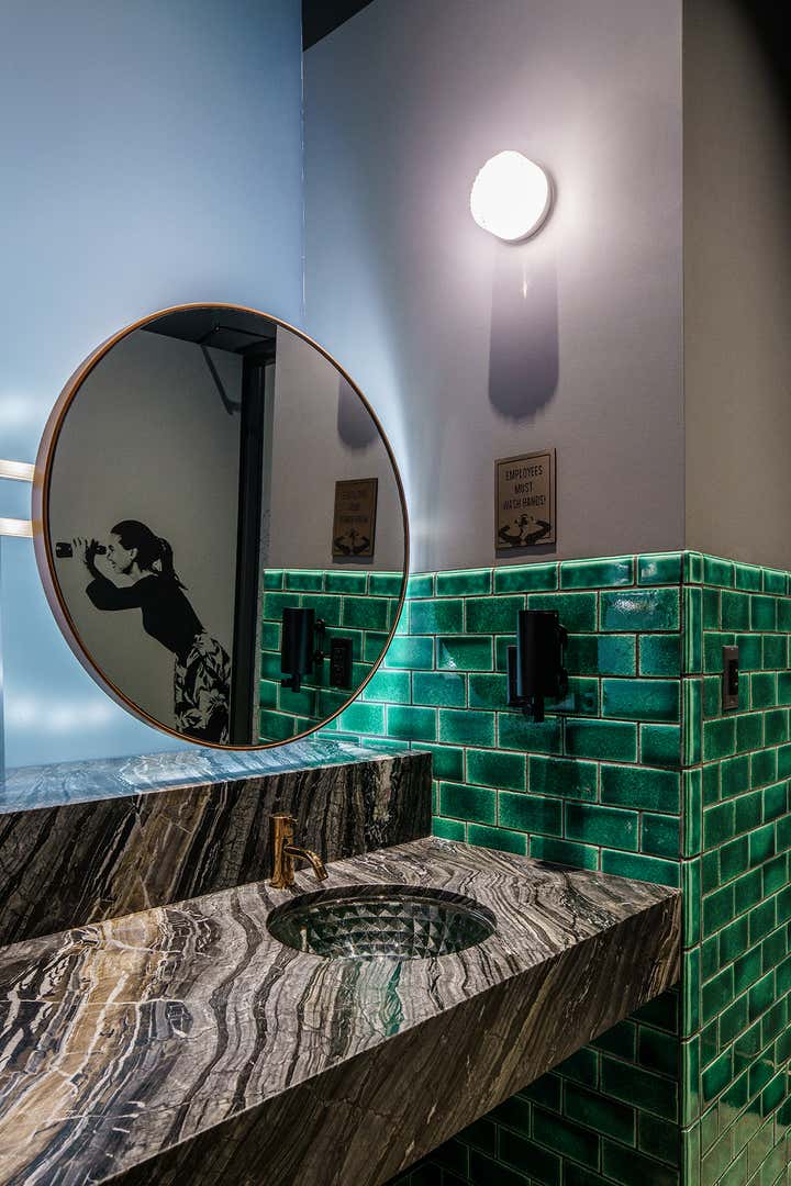 Glass House Restaurant and Bar is a hospitality concept in Kendall Square, Cambridge’s life sciences and technology district. Inspired by the neighborhood’s innovation and glass-making history, the restaurant was conceived as a “modern day meeting house” for the community. Integrating our architecture, interior design, and branding disciplines, the design team created both the restaurant’s design and branding concept as a nod to Kendall Square’s visionary identity. An important element of the design is a ‘room within a room’ — the “glass house” — that acts as a dining room and dedicated space for meetings, events, and social activities. The interiors consists of a minimal color palette, accented by nostalgic shades of green with copper details in lighting, bar taps, door handles, and fixtures; custom-created graphics have a similarly retro, playful spirit.