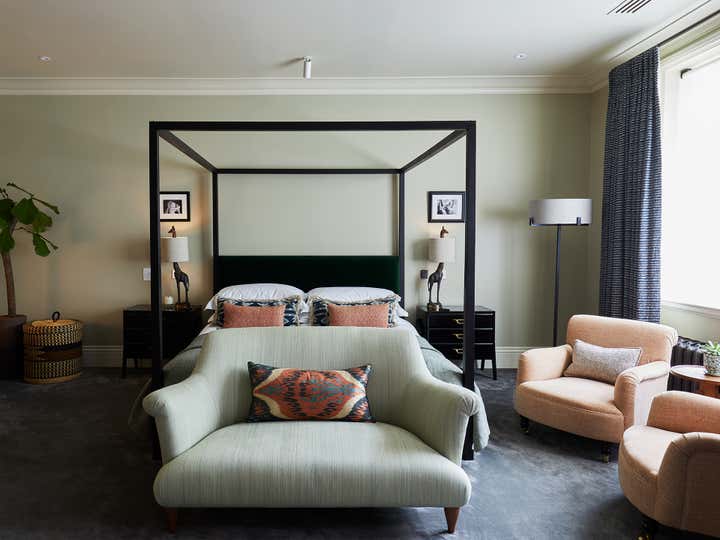 The challenge we faced in this traditional Arts Crafts house in Hampstead was remodelling it to accommodate a young, expanding family. The result was a complete refurbishment of the five-bedroom home into something fun-filled and functional that also retained much of its rich heritage. Our clients’ previous home was blandly designed in tones of grey and white and although they didn’t realise it at the time, it didn’t accurately reflect their true personality. This is a family that loves parties, music, art and festivals but this was only revealed after a conversation with Nicky. Once established, creating an interior environment that was aligned to their loves and likes became a much easier exercise. Of particular note were how we filled the bathrooms and WCs with bold colours to add moments of jollity in the smallest bathrooms and create genuine talking points for visitors and guests. But the fun didn’t stop there. We also designed and installed fun-packed double bunks in the kids’ bedroom that featured a climbing wall and upper reading deck.