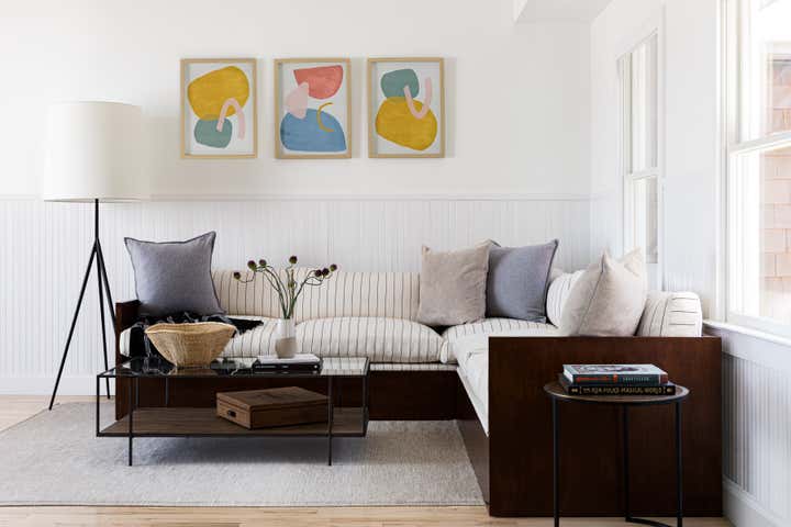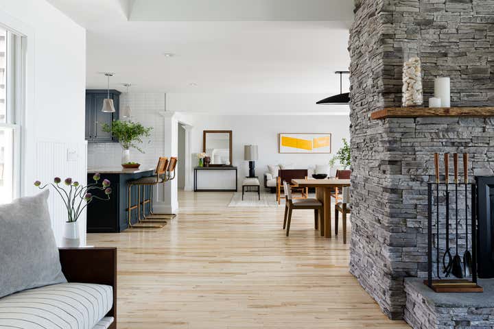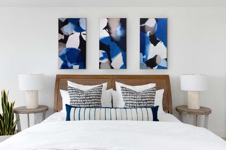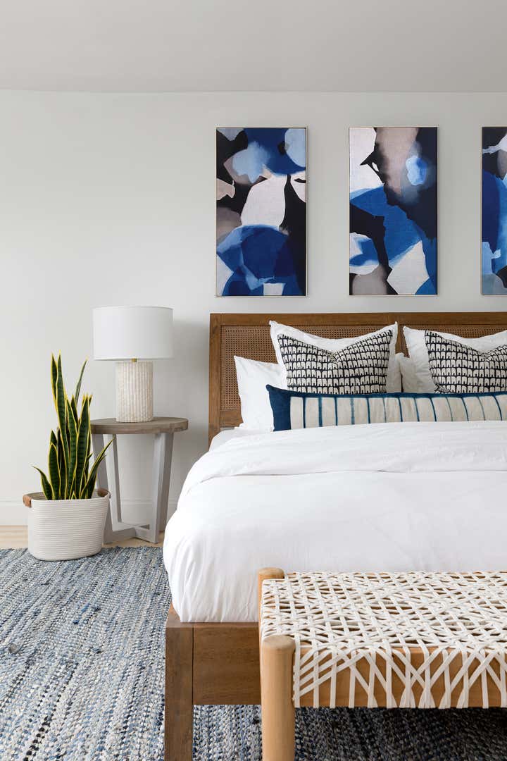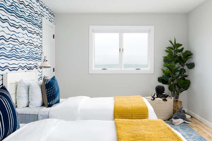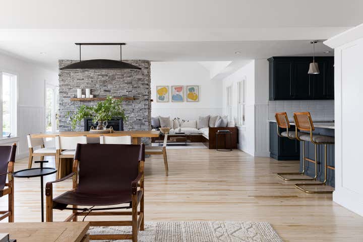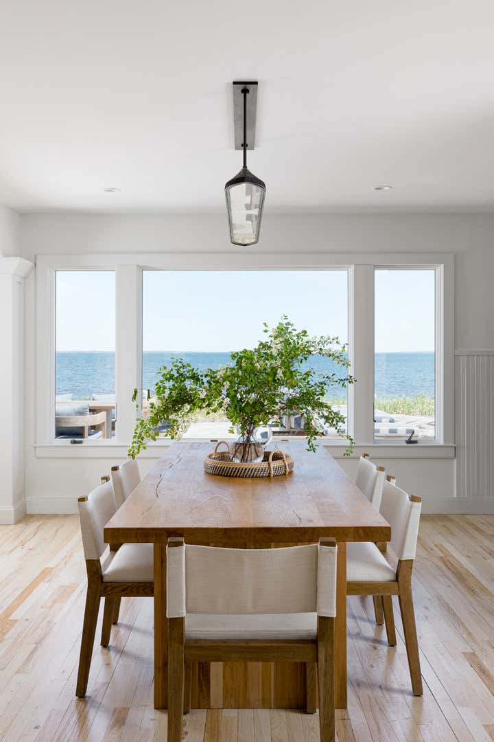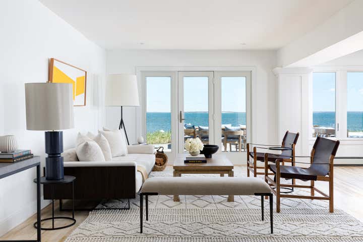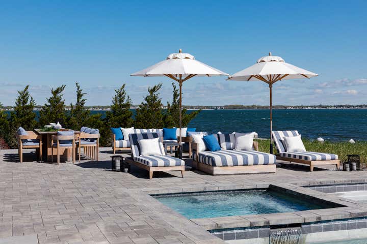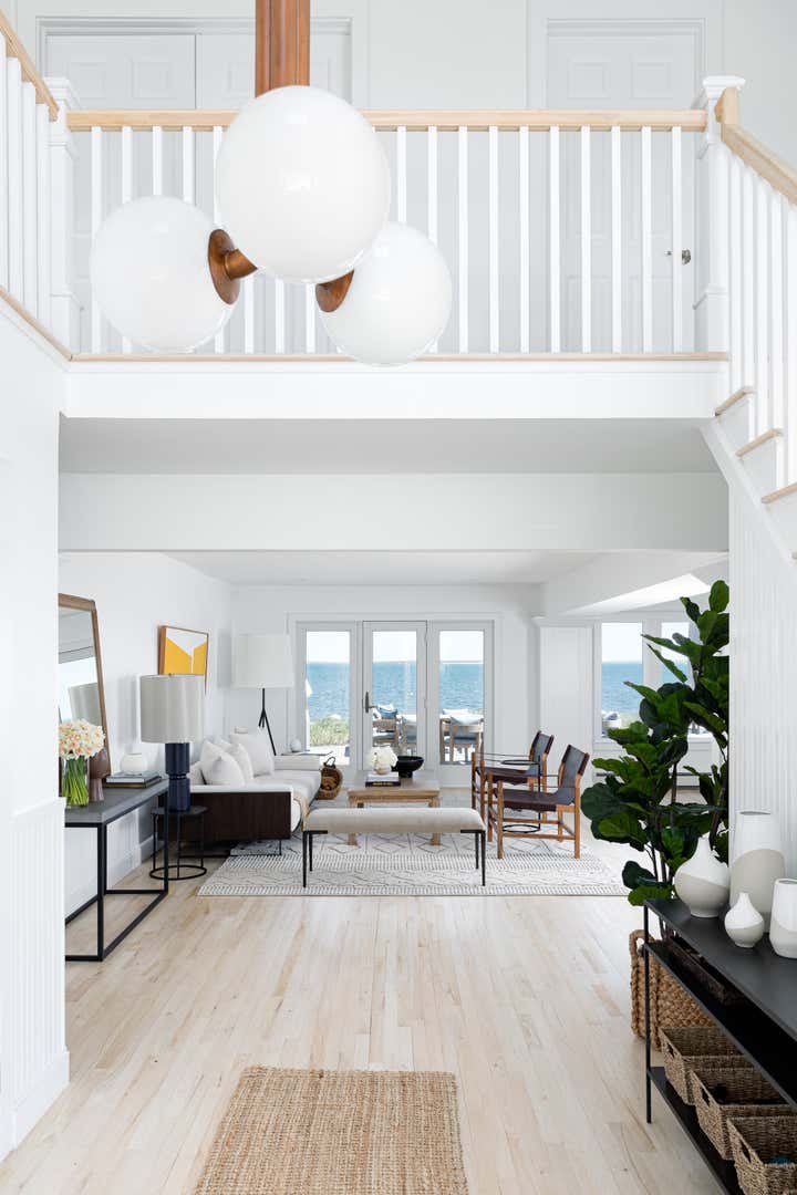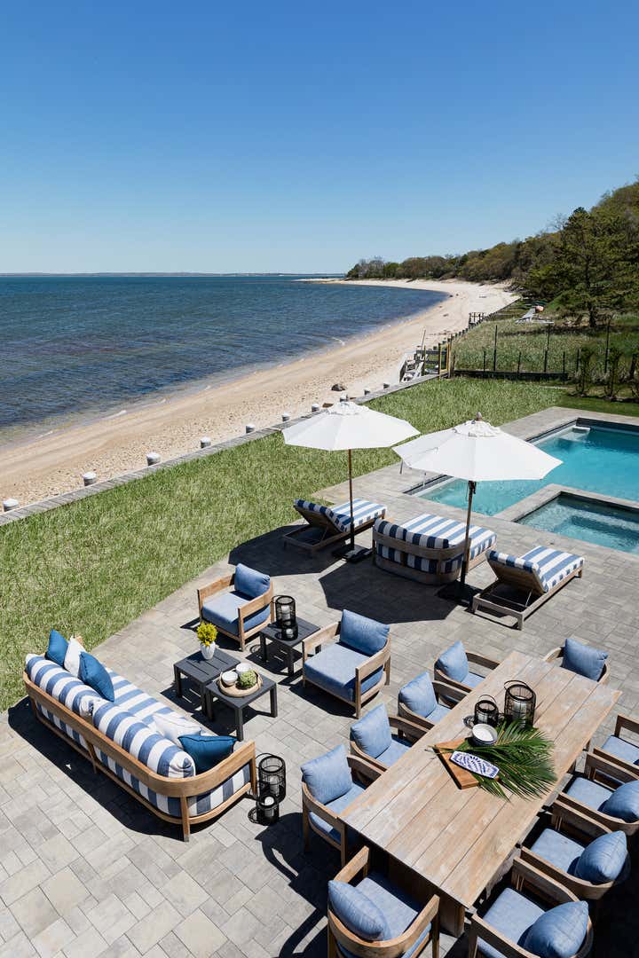 The design goal of our Hampton Bays project was to highlight the stunning ocean view and bring functionality to the open-concept layout. The sophisticated and modern design incorporates some bohemian seaside touches with multiple textures and blue color variations.