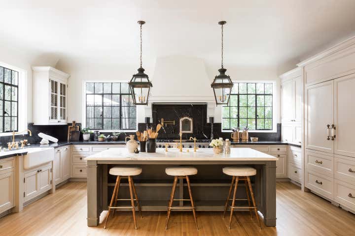 Renovating this 1928 Spanish Colonial to become the family home for Nate Berkus and Jeremiah Brent meant bringing it back to its original palette, carefully restoring time-worn finishes using old building materials, while making the spaces functional for a modern family. In came antique French mantels and Spanish marble floors, iron and glass doors, and vintage lanterns and unlacquered brass hardware.