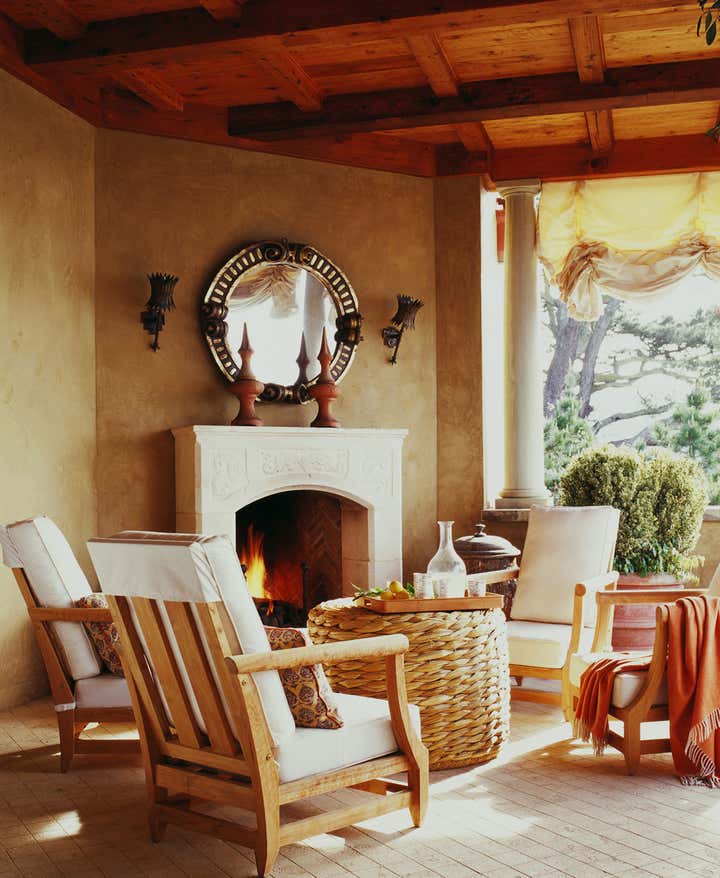 Designed to take advantage of its dramatic site and the mild Marin climate, this Mediterranean-style residence has multiple outdoor living areas oriented towards views of San Francisco Bay and Mt. Tamalpais. The three-story home is anchored into its steep hillside site with hand-cut stone walls. The topmost floor s outdoor loggia features a fireplace and radiant floors to extend outdoor living throughout the foggy season. Below, a garden, pool, fire pit, outdoor pizza oven and Roman spa complement the clients indoor/outdoor lifestyle. Plaster walls and ceilings are complemented by custom steel and bronze doors, windows, balconies and awnings.