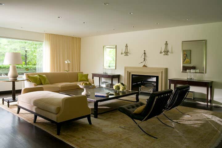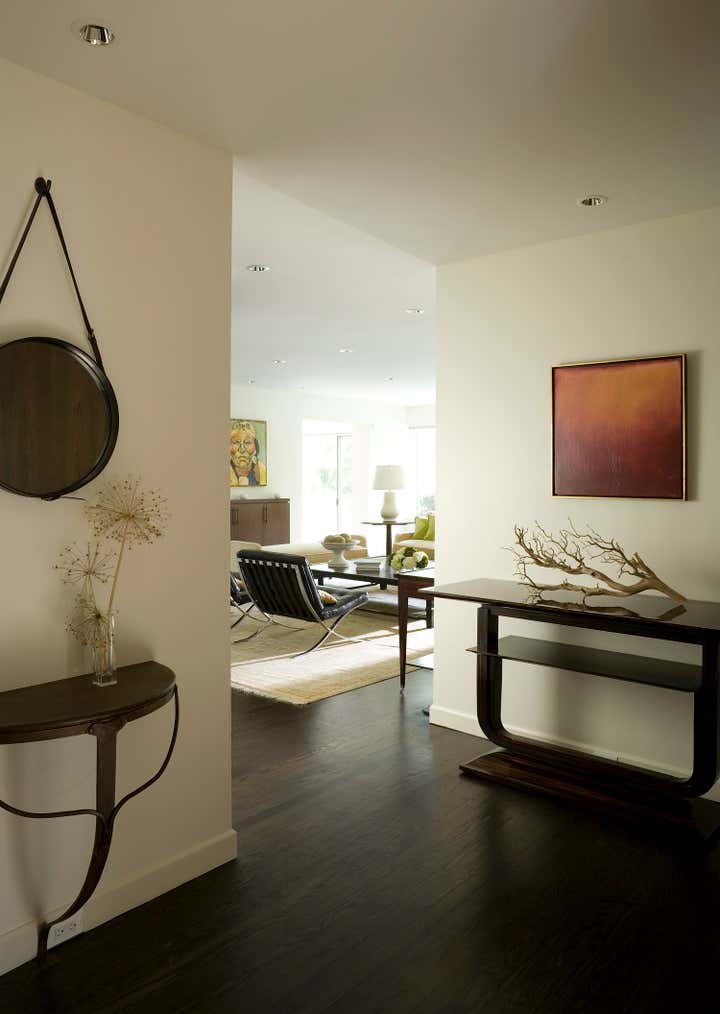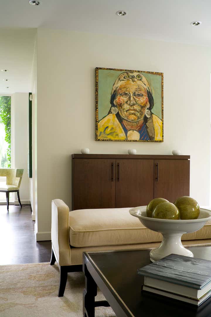 Designed in 1937 by Nathaniel Owings, this landmark home with its open, inviting interiors and large picture windows is still modern today. However, over the years, decorating choices had lessened the timelessness of the space. Frank s objective was to remain sensitive to the home’s historical significance while incorporating an updated aesthetic that celebrated its contemporary heritage. Ponterio sought to bring the rooms up to date without destroying the underlying structure and introduced custom furnishings and millwork that created further architectural interest. A warm palette, rich textures, colorful artwork and accessories were used to play with the openness of the home, creating spaces that evoked elegance and comfort. Additionally, use of fabric on walls and doors not only softened the home’s contemporary lines but also provided enhanced acoustics.