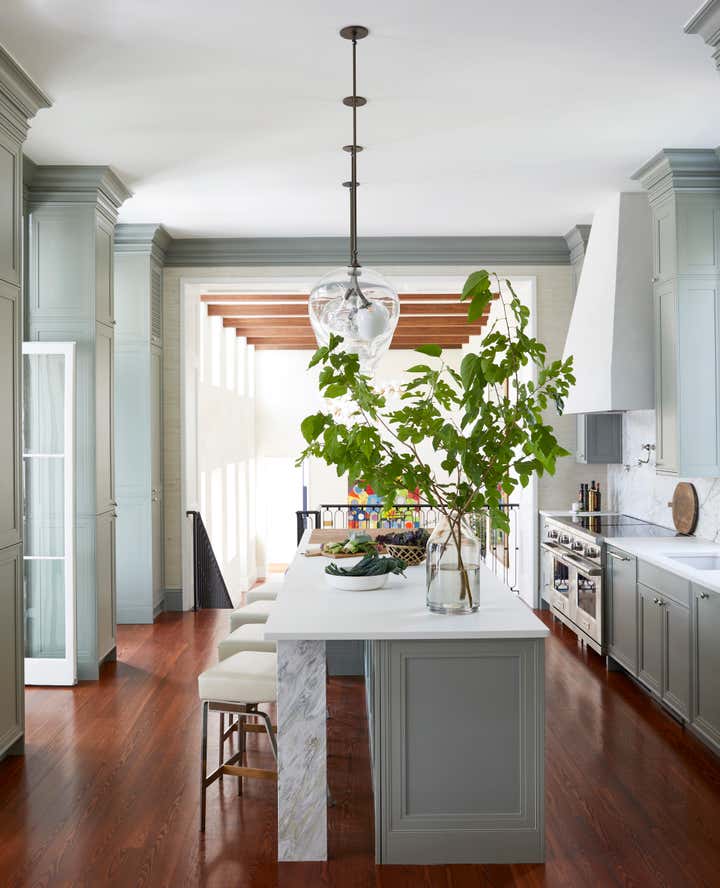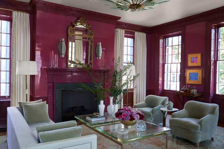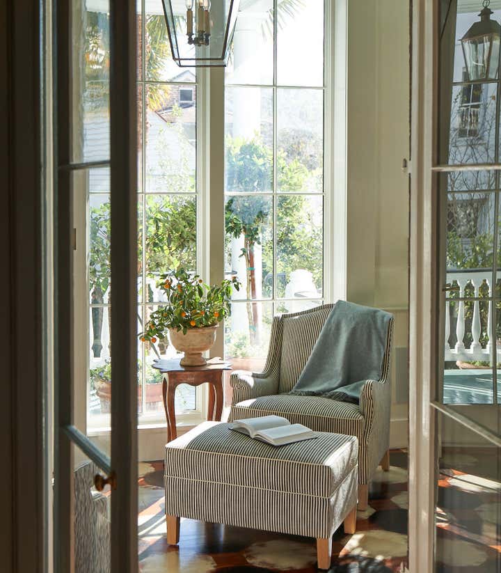 This stately Federal home in Charleston’s historic South of Broad neighborhood underwent a meticulous two-year transformation. The 8,130-square-foot residence blends timeless elegance with bold, personalized design. In the entrance hall and sun porch, painted pine floors were artfully aged to evoke a sense of history.