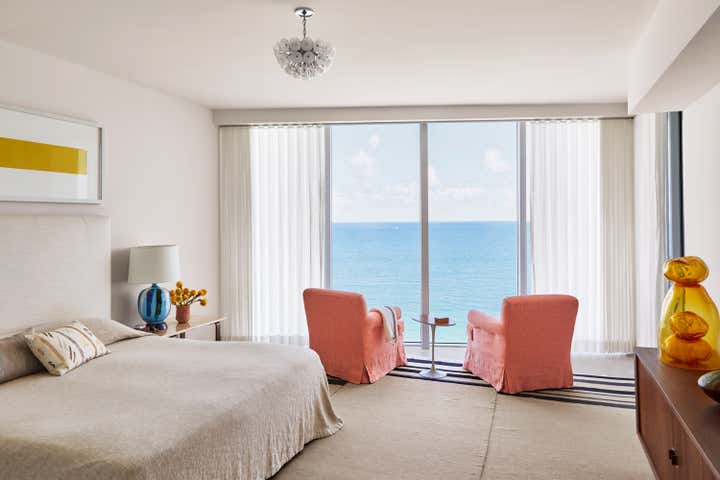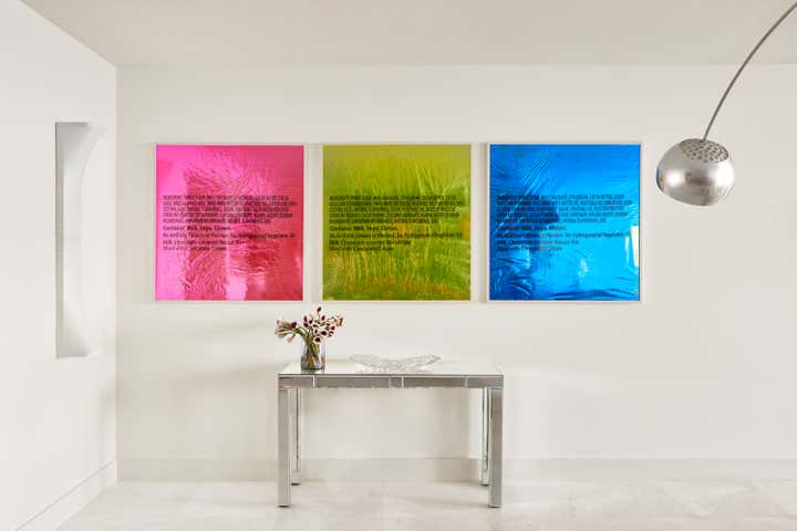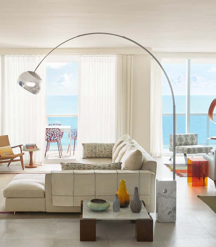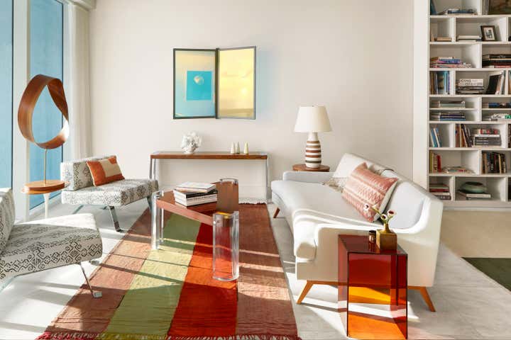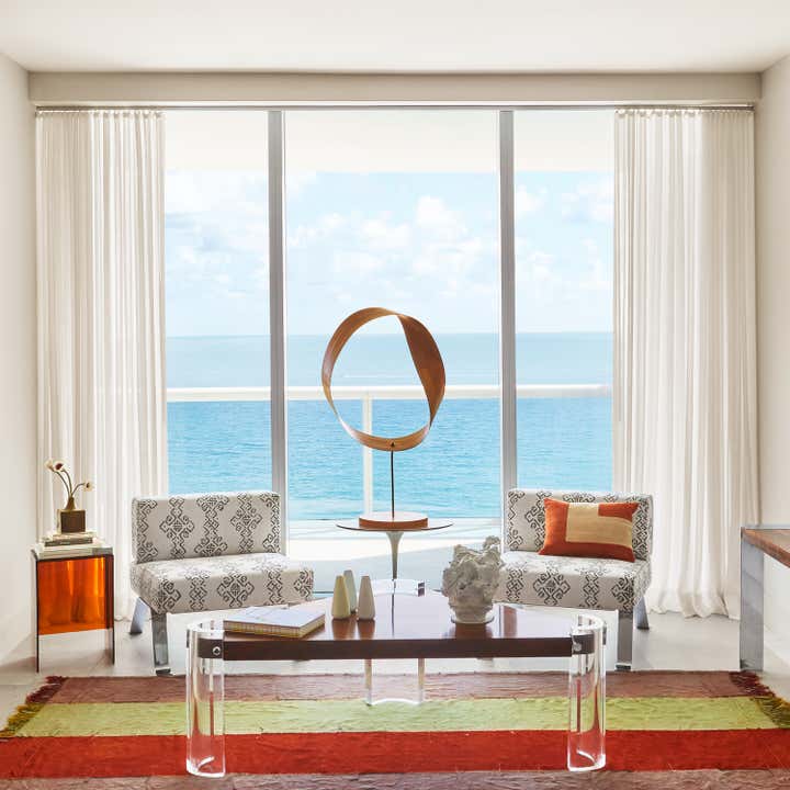 Sara Bengur s clients wanted to create a space that would be intimate, ideal for the two of them and their children, as well as elegant enough to entertain in, especially during Miami Basel. They are often in Europe so Sara wanted to bring elements of their lifestyle into the design. She used color in key places incorporating textures and patterns in unexpected ways. Sara custom designed the window treatments, and soft furnishings, as well as most of the rugs, which are her contemporary designs and all made in Turkey. Creating a backdrop for her client s art collection, paying attention to how scale and scope relate in each room was essential to Sara’s approach. She mixed periods in her furniture selection in a cohesive way to add an element of surprise that works well with her client’s rotating collection. The apartment truly reflects their lifestyle and who they are.